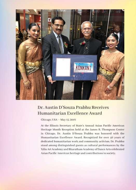 Dr. Austin D’Souza PrabhuReceives HumanitarianExcellenceAward Chicago,USA – May15,2018