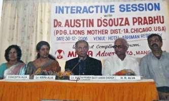 Austin is really a dynamic personality, one only in a generation.Managingandediting4 well known publications simultaneously at one point in Mangalorecanbeseenasarealfeat that even a juggler cannot do. His organizational skills proved to be extraordinary during the 'Tyagi Bill' activism. He managed to wake up most sleeping Mangalorean Catholics of Mangalore Diocese. The protest he engineered was a runaway success like many of his rallies and activities. His book for youth ‘Adarsh Yuvazonn’ was truly inspiring. He has penned all his youthful knowledge in this one book. The Dynamic leader, actor and popular writer that Austin Prabhu was reflects even to this day. Dr Veerendra Hegde, Dharmadhikaari at Dharmasthala, recently too hailed the services of Austin through Lions International and presented with him ‘Abode of Dharma – Dharmasthala’ (Pictorial Information Book) and a memorial medal.His leadership is recognized all over the world and recently he