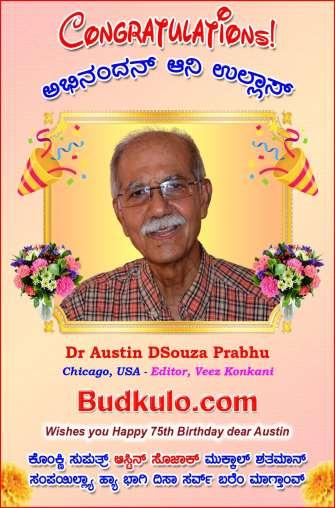 Those four qualities may spell HERO,buttothelikesofAngel and many more who stand for Altruist Austin D’Souza Prabhu, a father figure, and is sure to be remembered forever. Let's delve into the facts and life of our 75year-old or better young protagonistaboutwhomitisnoton the surface to know and appreciate and applaud easily. Currently he is editing three e-magazines: Veez Konkani , IllustratedKonkani Weekly