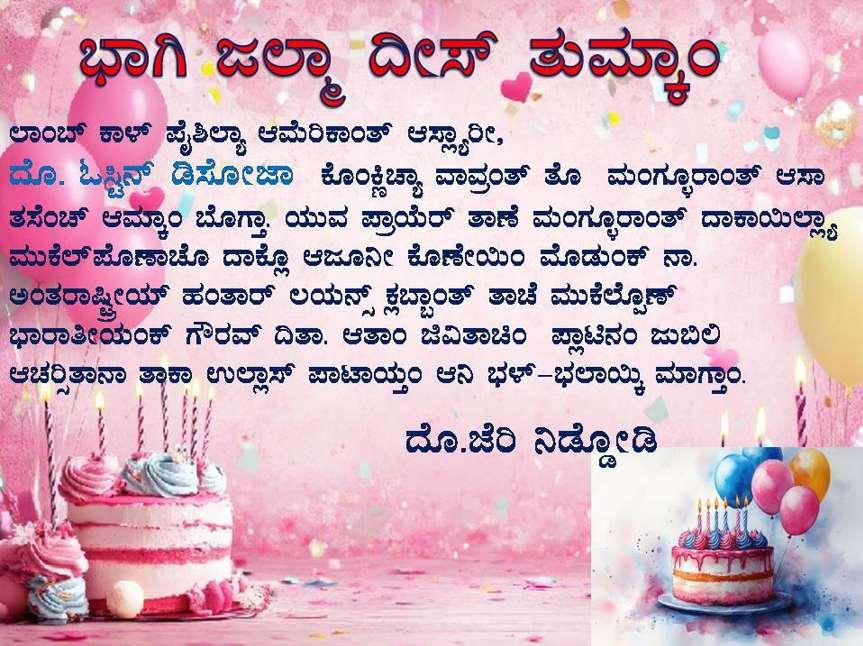 eartfelt Congratulations to Dr. Austin on His 75th Birthday, one of the kindest and most gentle people Ihaveevermet. Dr.Austinhasbeen a true source of inspiration, especially for the Mangalorean Catholic youth. His dedication to personal excellence, community service, and culturalenrichment has left a permanent impact on countless lives. Hehasalwaysbeenverysupportive, and I’ll never forget how he encouraged me to write, sharpen my skills, and grow into a more confident person. Thanks to him, I