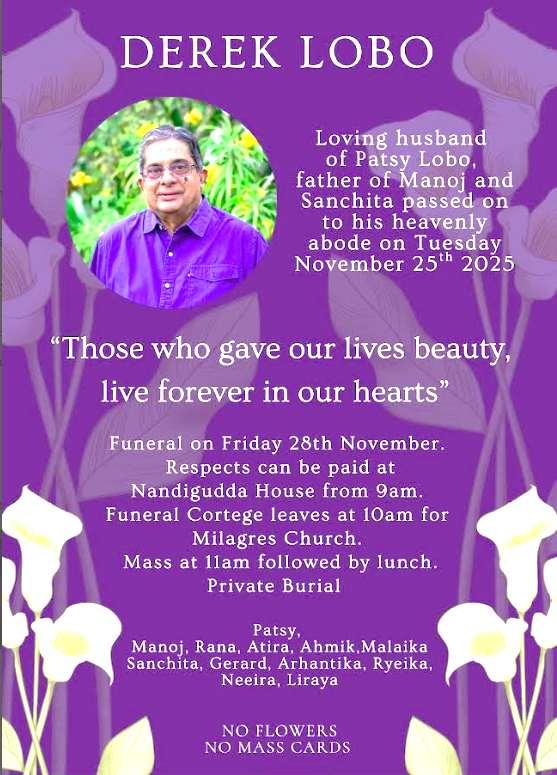 Following Derek’s retirement, the couple settled in Derek’s ancestral homeatAttavar,Mangalore–oneof the stately homes of Mangalore, built by his great-grandfather LawrenceLobo,alawyer,in1892.