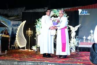 for the felicitation programme. The programme commenced with a prayer song. Rev. Fr Andrew Leo D’Souza welcomed the gathering, thanked the donors for their generous presence, and congratulated the children who received the Sacrament of Confirmation. Out of the 90 children, three exceptionally gifted students were felicitated by the Bishop with flower bouquets for beingwitnessesofChrist.