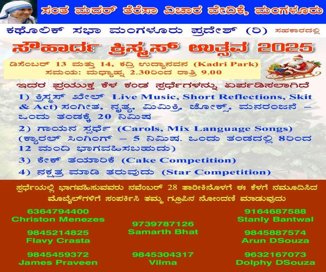 May Advent be a time of true spiritual preparation so that we do not miss the Lord in our Christmas. Let the external celebration be moderate but spiritual celebration intense. Let us share the joy and happiness of Christmas with one andall,especiallywiththepoorand needy, for he became poor and identifieshimselfwiththem.Advent and Christmas Season are most fitting times to practice mercy and charity.