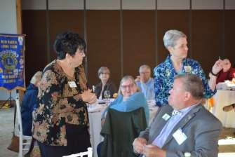 Doneske introduces Jeane Schoen, RDN, lead educator for Diabetes and Nutrition Counseling at Delnor Hospital (r), speaking on the impact on eye health due to diabetes. Perfect topic for our Lions Club to host.