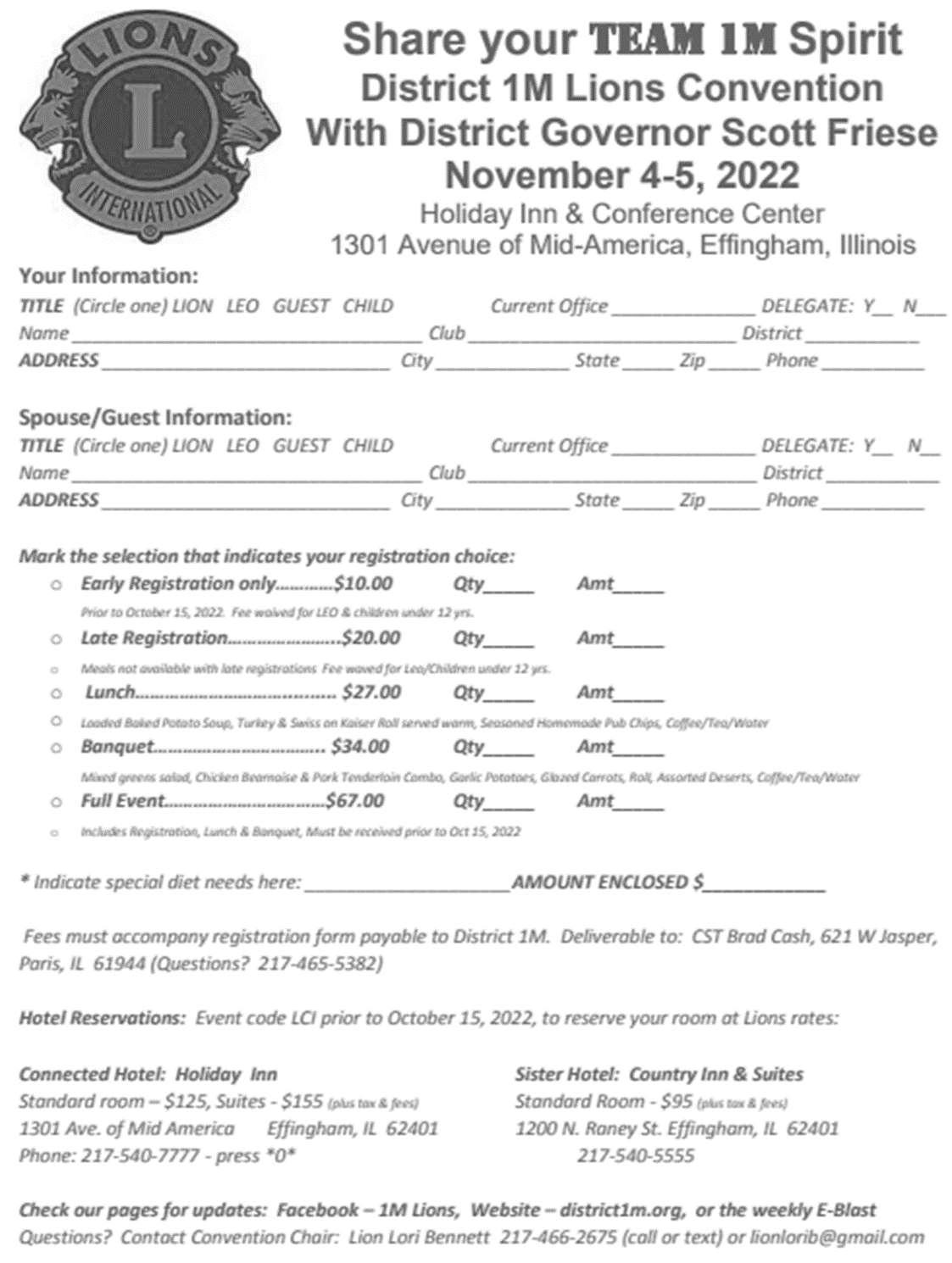 note your resolution must be submitted to PDG Ron Fruit committee chairman of Constitution& By laws. Your resolutions must be written in the correct format. It is the Committee’s responsibility to review, recommend and/or reject these resolutions. These resolutions will be voted on by the Lions of Illinois at our State Convention May 19 21, 2023.