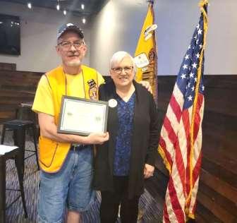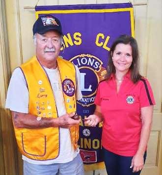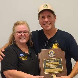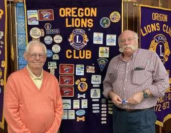 Oregon Lions Present an Award at their General Meeting on September 8th Oregon Lion Mike Hoffwaspresentedanawardforhis outstanding service to the Oregon Lions Club.