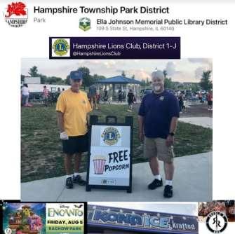 HampshireTownshipParkDistrictto provide a Movie Night for the kids last summer. Lions played games with the kids prior to the movie starting at dark.