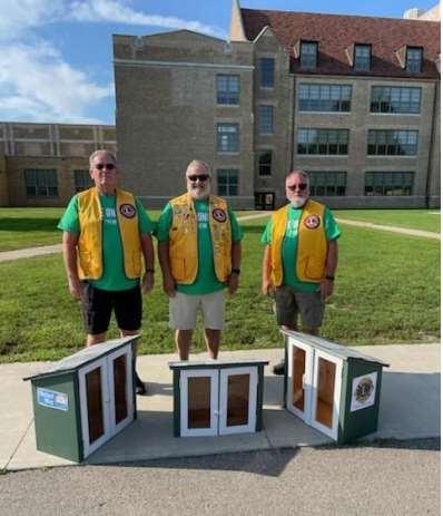 President Bill Brozovich announces that the Dixon Evening Lions Club recently built and constructed 3 little libraries that will be placed around Dixon in conjunction with the United Way of Lee County. Pictured with the libraries from left to right are Lion Rod Tichler, Lion Jeff Kuhn, and Lion Gary Presley all of the Dixon Evening Lions Club.