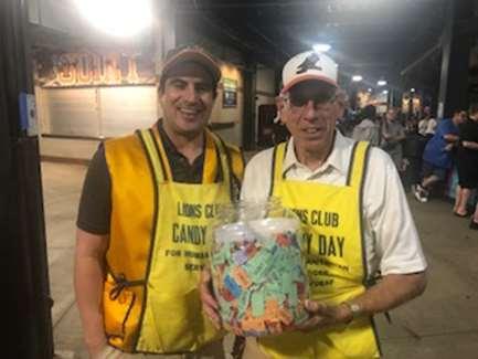 The Joliet Noon Lions sold the 50/50 tickets at a recent Slammer’s Baseball game. PDG John Joseph