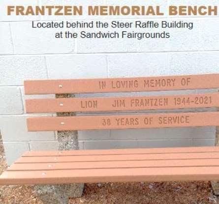 Sandwich Lions Club is located a Frantzen Memorial Bench behind the Steer Raffle Building at the Sandwich Fairgrounds.