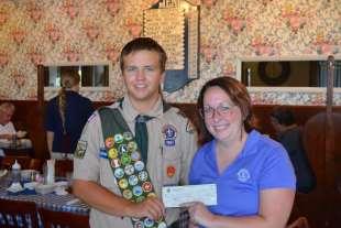 fall festival. Attached are pictures from the event. It was one of our most successful events in years Highland Supports Eagle Scout Candidate Logan Driemeyer, an Eagle Scout Candidate, visited the Highland Lions Club to solicit support for his Eagle Scut Project. He is raising money to restore the batting cage at the local Knights of ColumbusBaseballField.Thefieldis usedbyyouthandadultsbothmale and female. His description was thorough. Lion President Katie Henricks presented Eagle Scout Candidate Driemeyer with a check for $5oo.