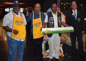 Lions Hector Martinez and John Knudson show off the $2200 worth of tickets. Presenting the $1100.00 cash winnings is Lion Ken Miller,