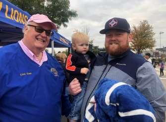 33 The Illinois Lion & Leo Honiotes demonstrates the art of selling a wingspan of tickets.