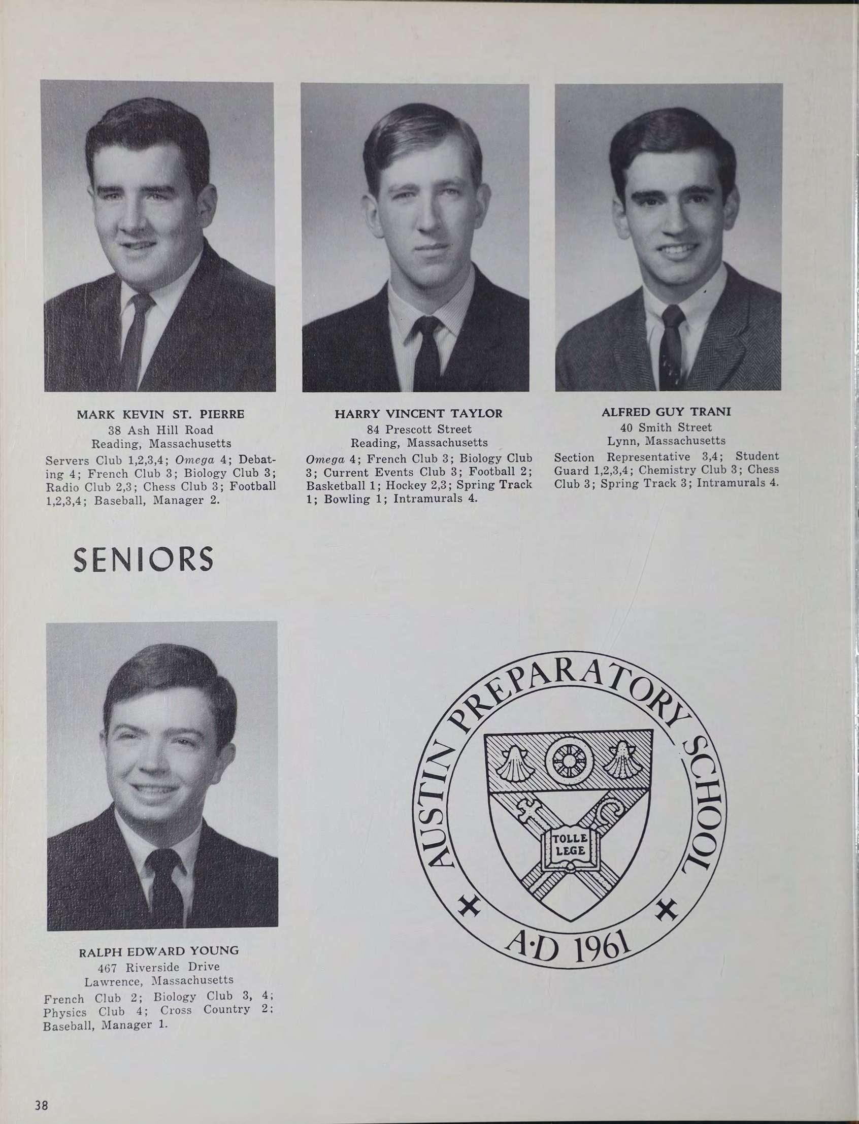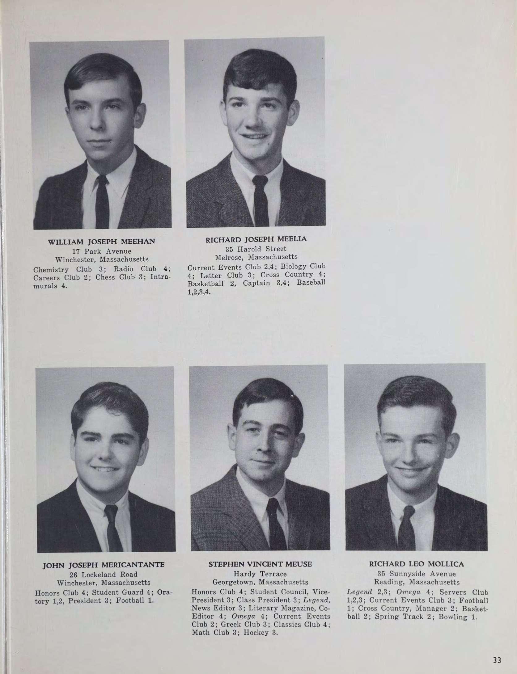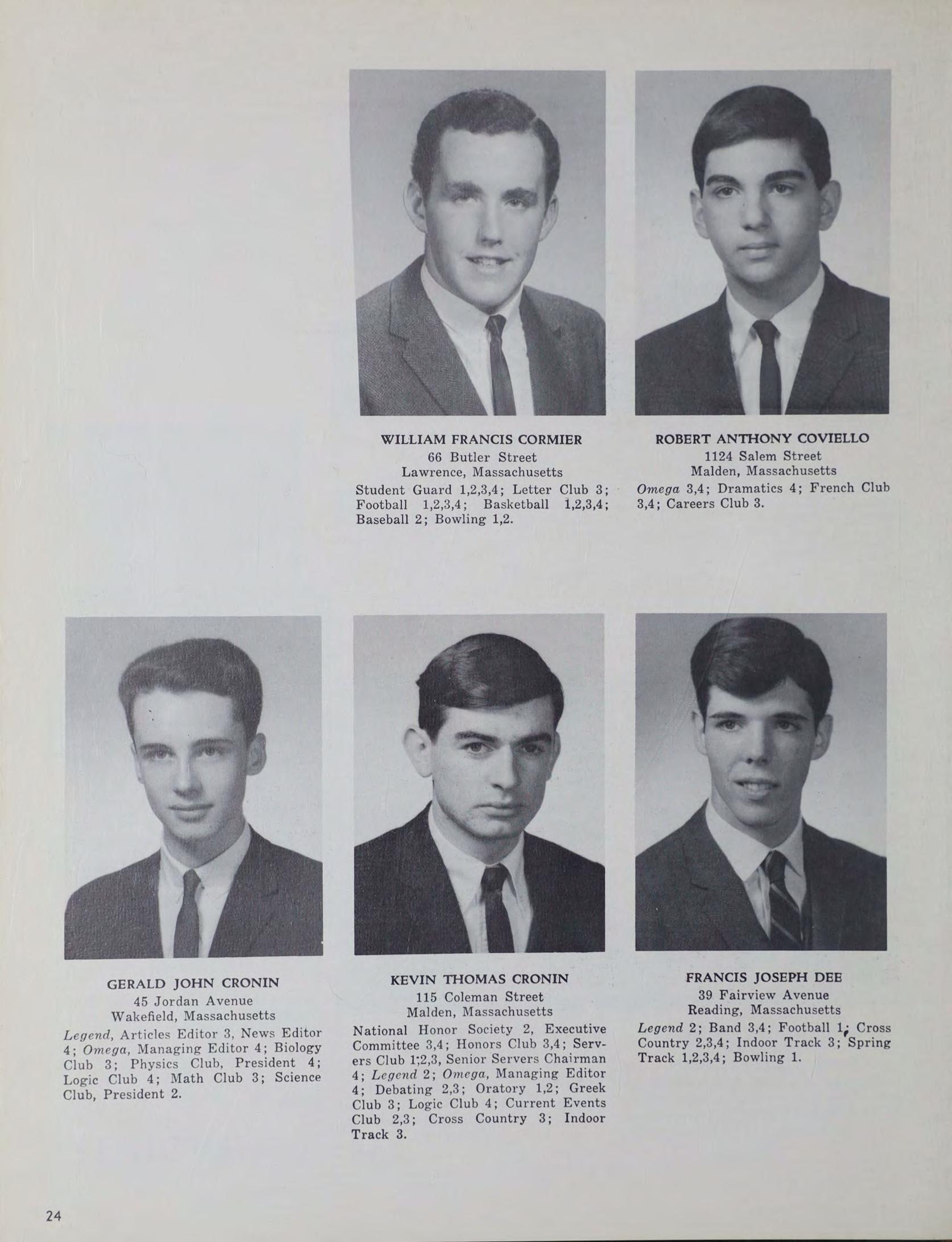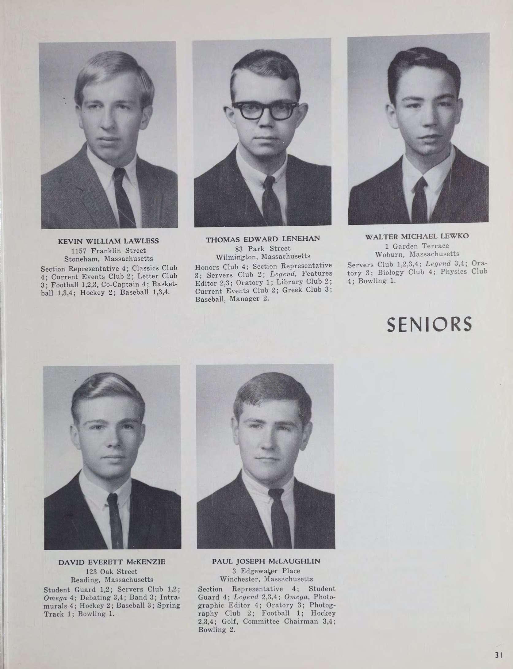 Class Secretary-Treasurer 4; Student Guard 1,2,3,4; Oratory 1; Classics Club 4; Current Events Club 2,3,4; Letter Club 3; Football 1,2,3, Co-Captain 4; Basketball 1,2,3, Co-Captain 4; Baseball 12:3 ,4.