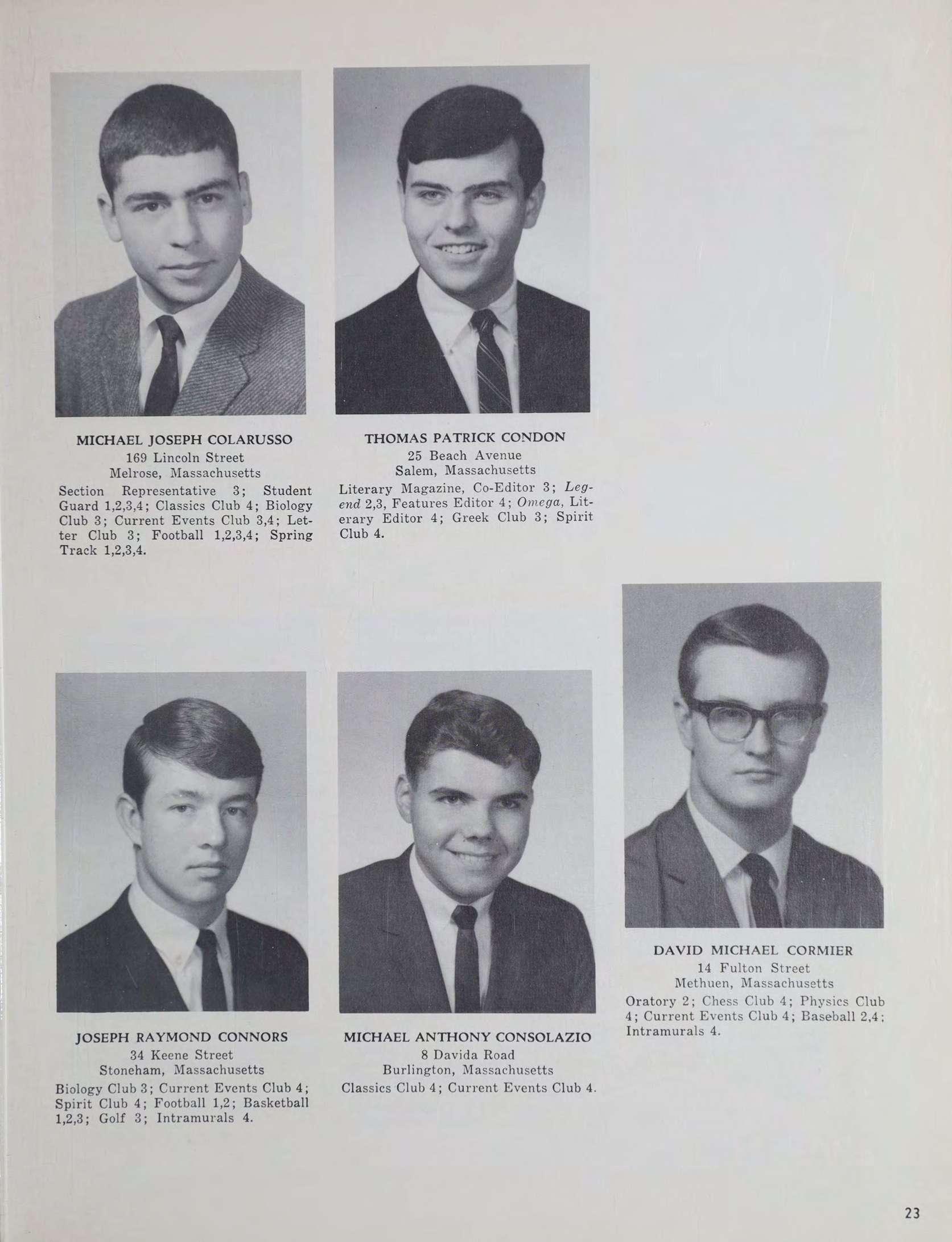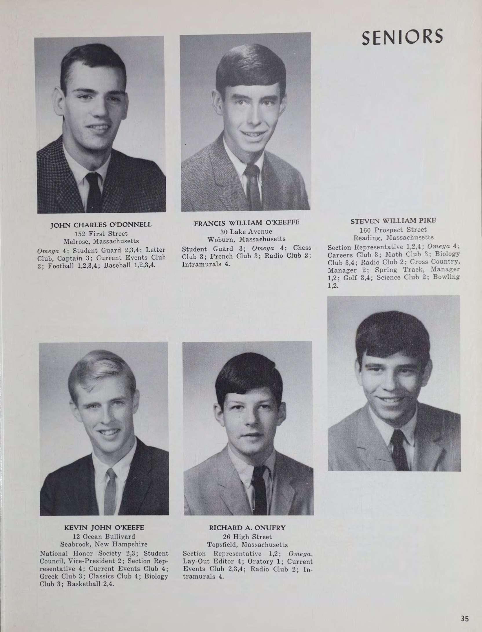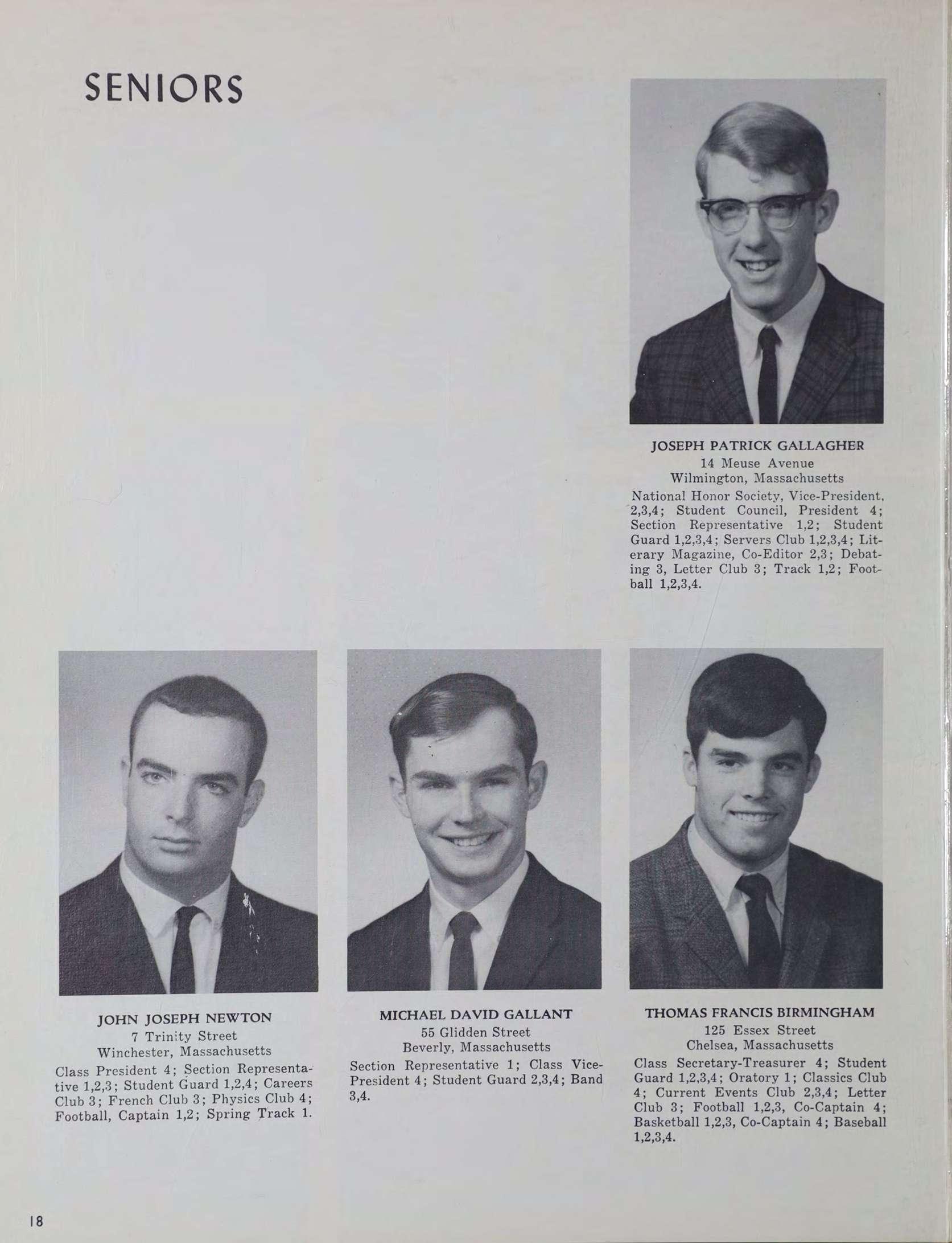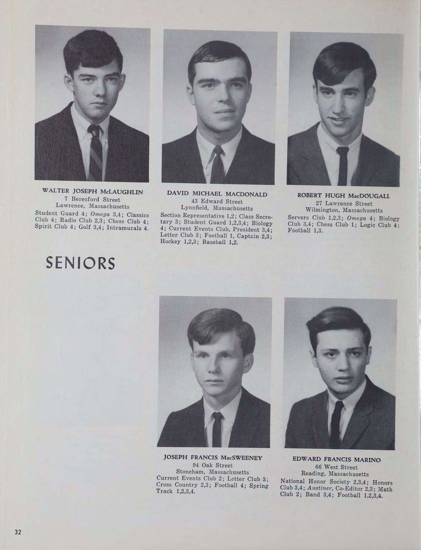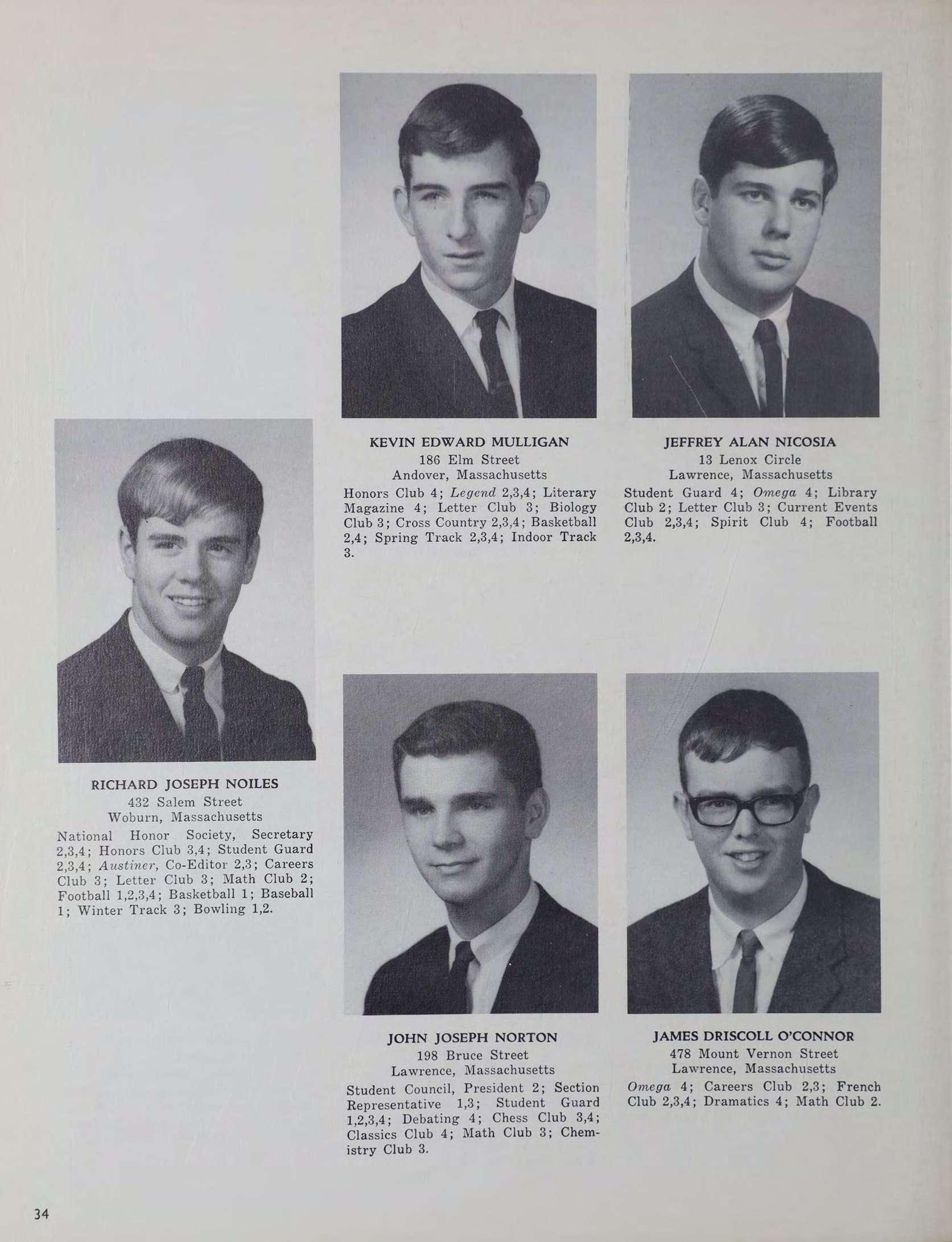 Class President 4; Section Representative 1,2,3; Student Guard 1,2,4; Careers Club 3; French Club 3; Physics Club 4; Football, Captain 1,2; Spring Track 1.