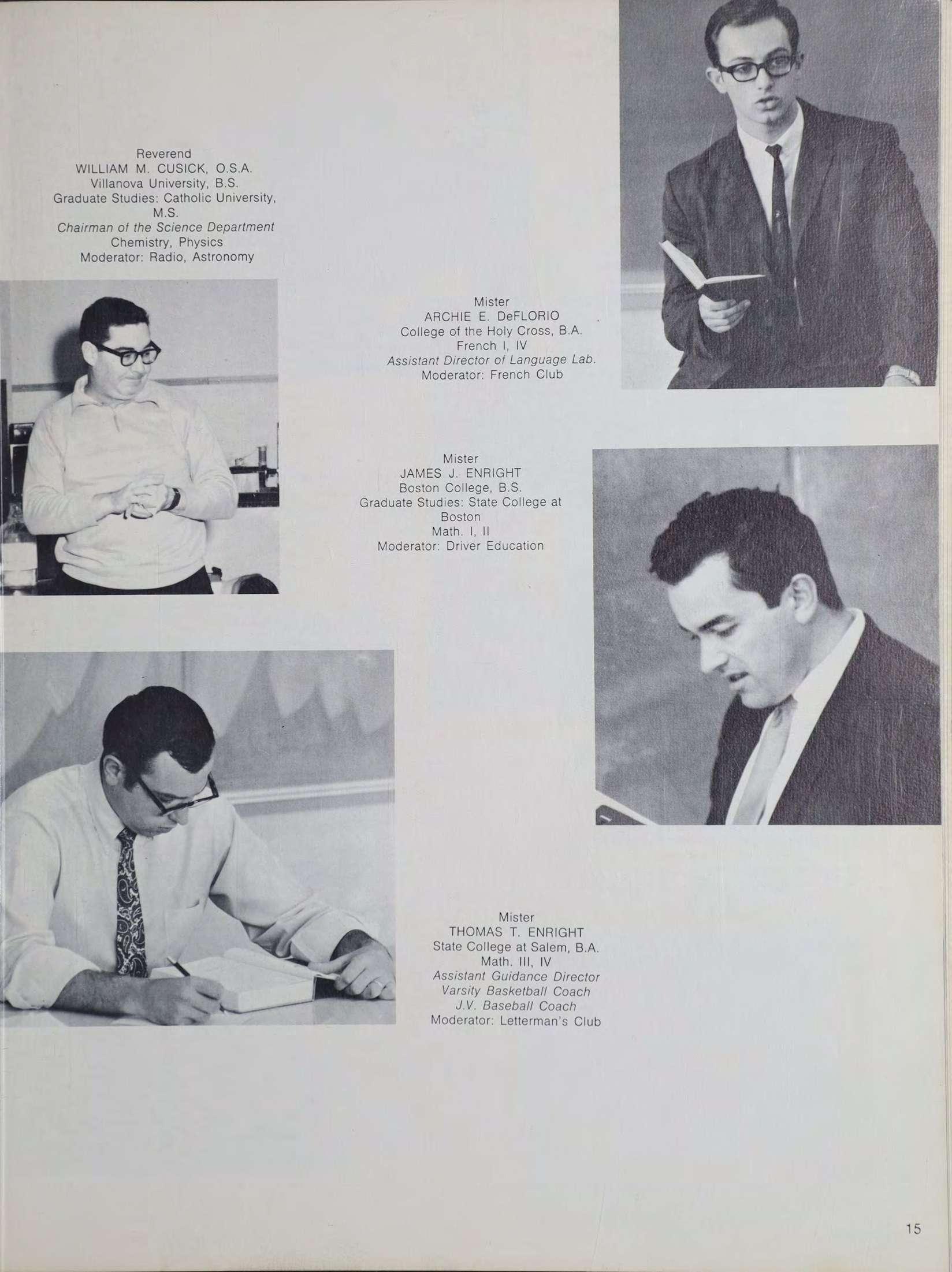 Chairman of the Latin Department Assistant Headmaster for Student Personnel Problems, Guidance Director Moderator: Class of 1969, Cheerleaders, Alumni Association