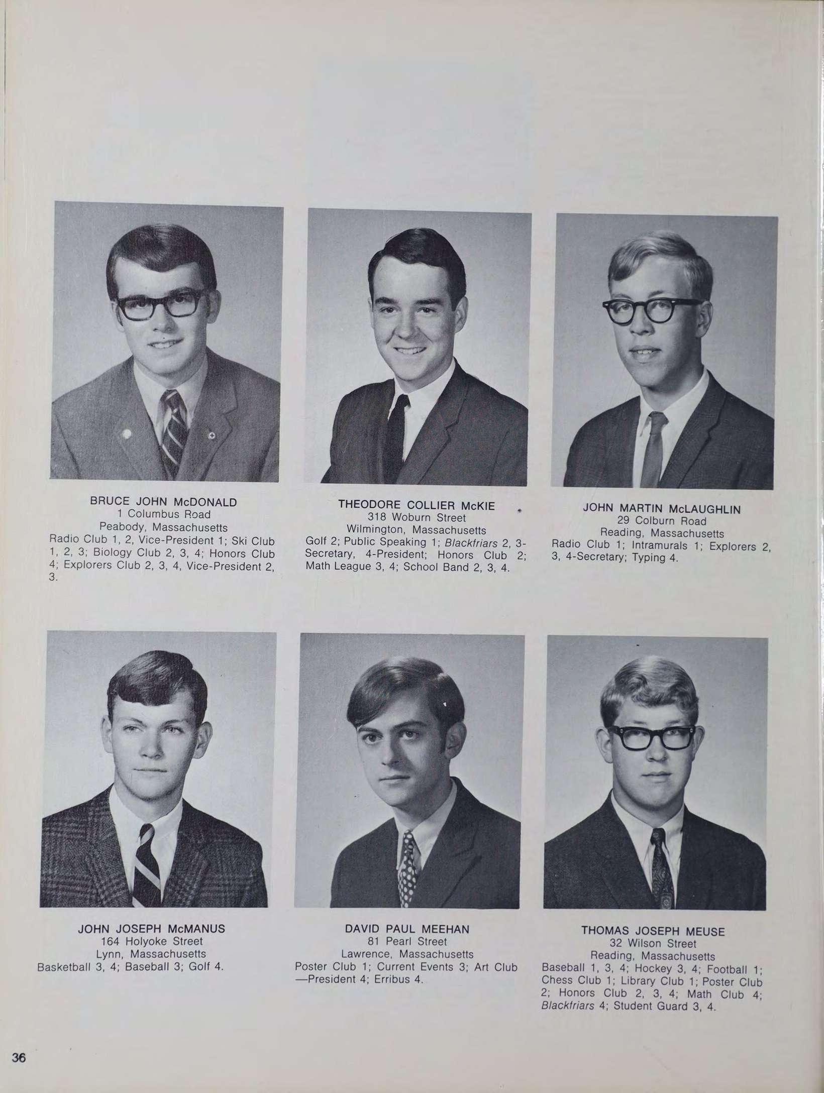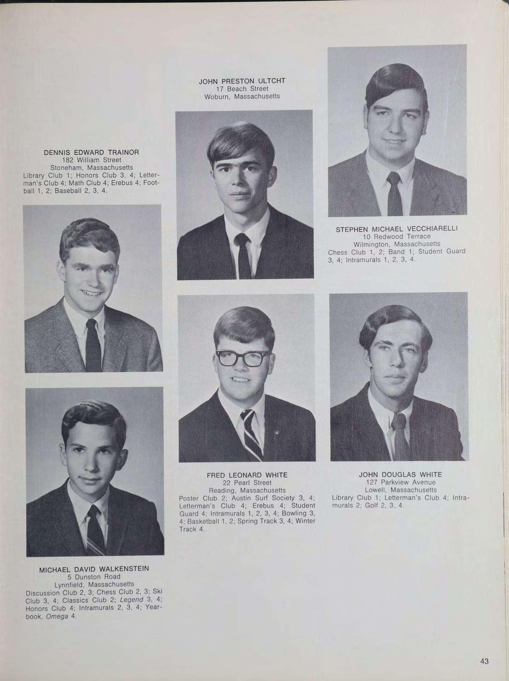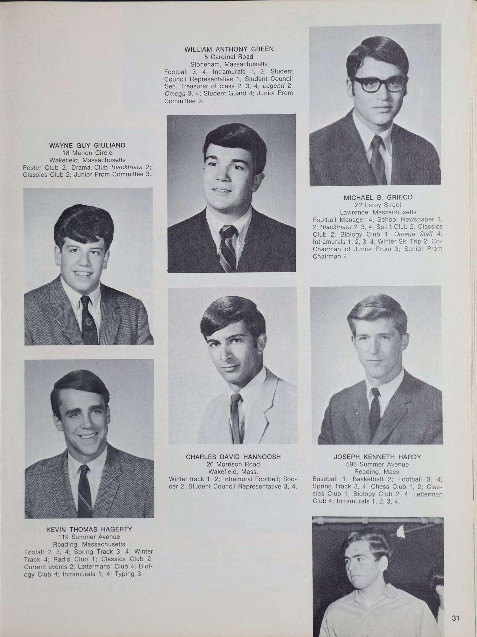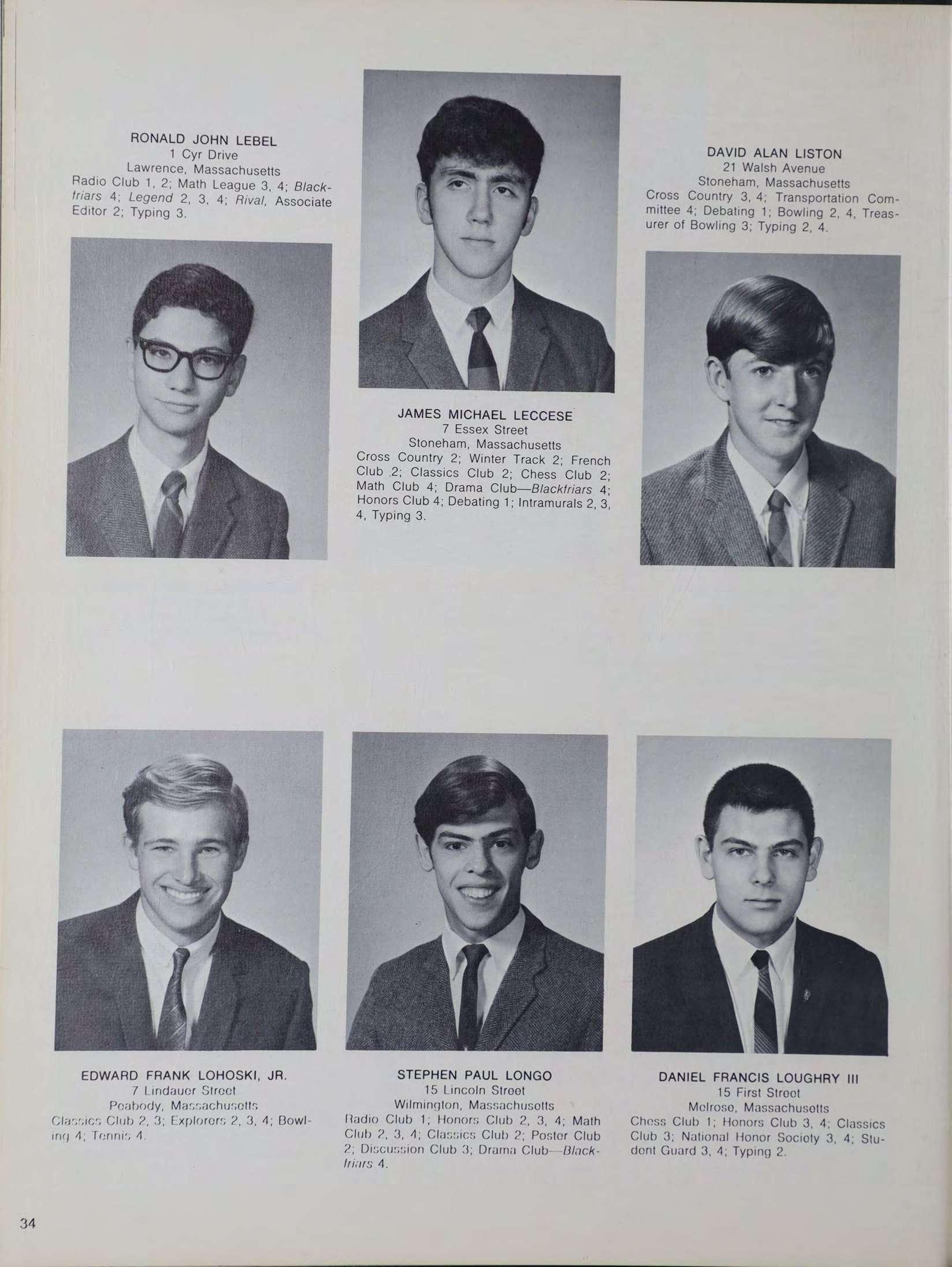 Chelsea, Massachusetts Classics Club 1, 2, 3; Student Council Representative 1; Blackfriars 2, 3; Russian Club 3; Football 2; Omega 4.