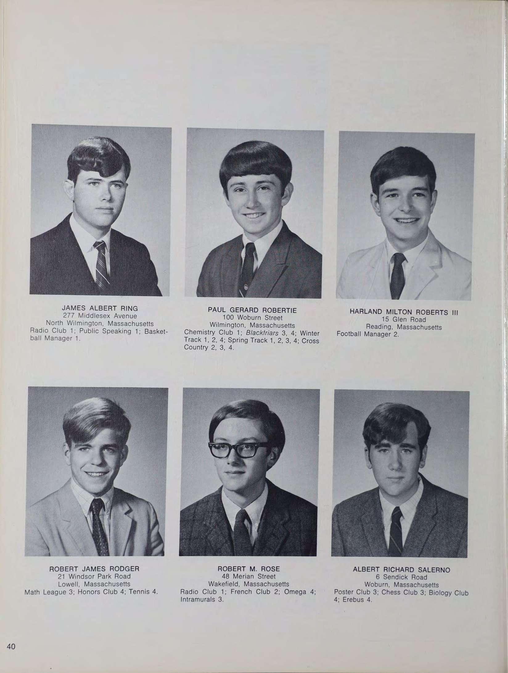 ROBERT FRANCIS SURETTE JR. 343 Salem Street Wakefield, Massachusetts Radio Club 1; Poster Club 3; Discussion Club 3; Russian Club 3; Blackfriars 3, 4: Intramurals 1, 2, 4: Bowling 4.