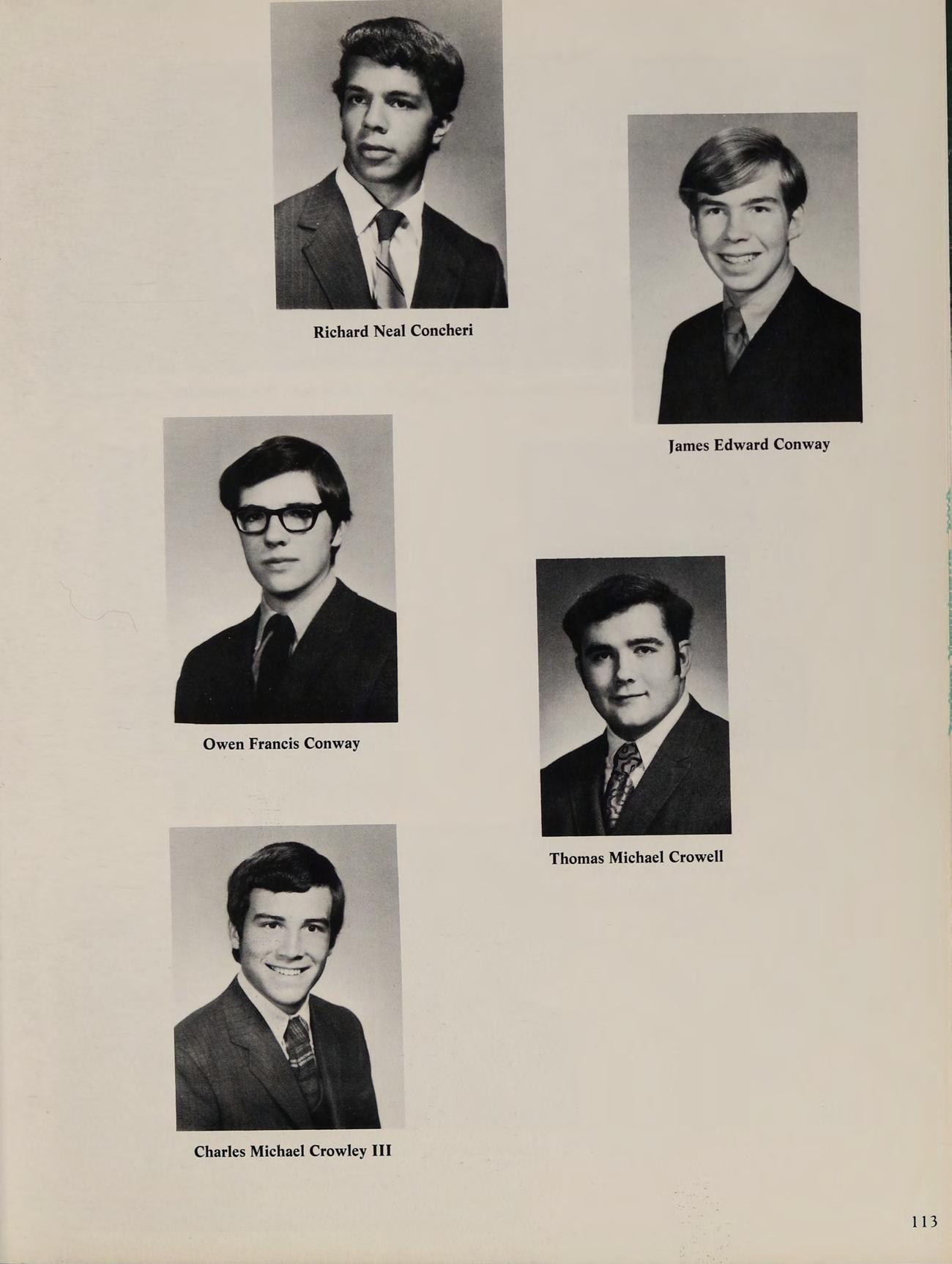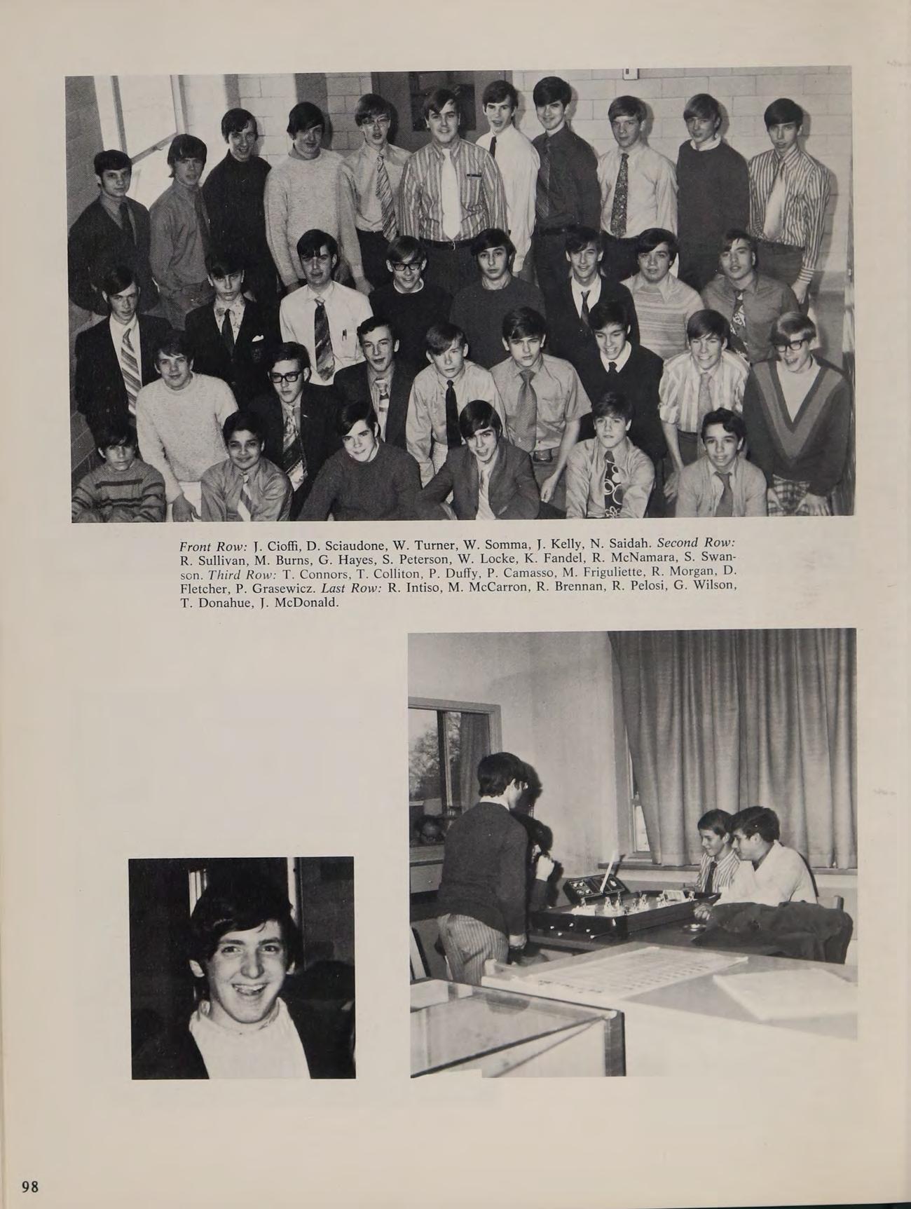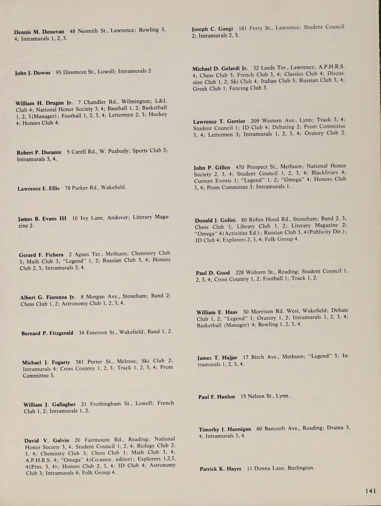 James D. Sullivan III 135 Berkley St., Lawrence; Chess Club 1, 2, 3; “Legend” 1; A.P.H.R.S. 4(Cougar) ; “Omega” 4; Explorers 2, 3, 4; Intramurals 1, 2, 3; ID Club 4; Folk Group 4.