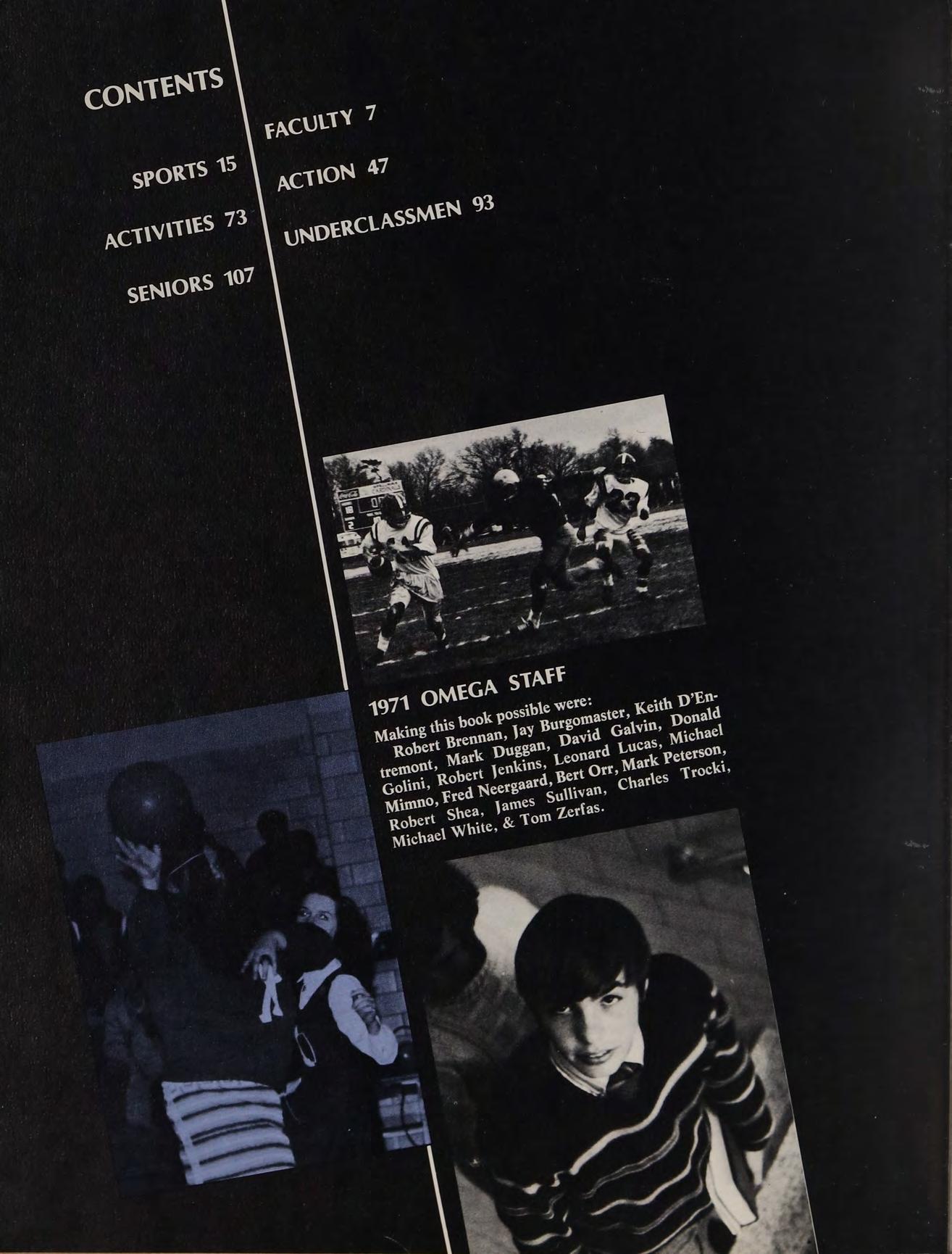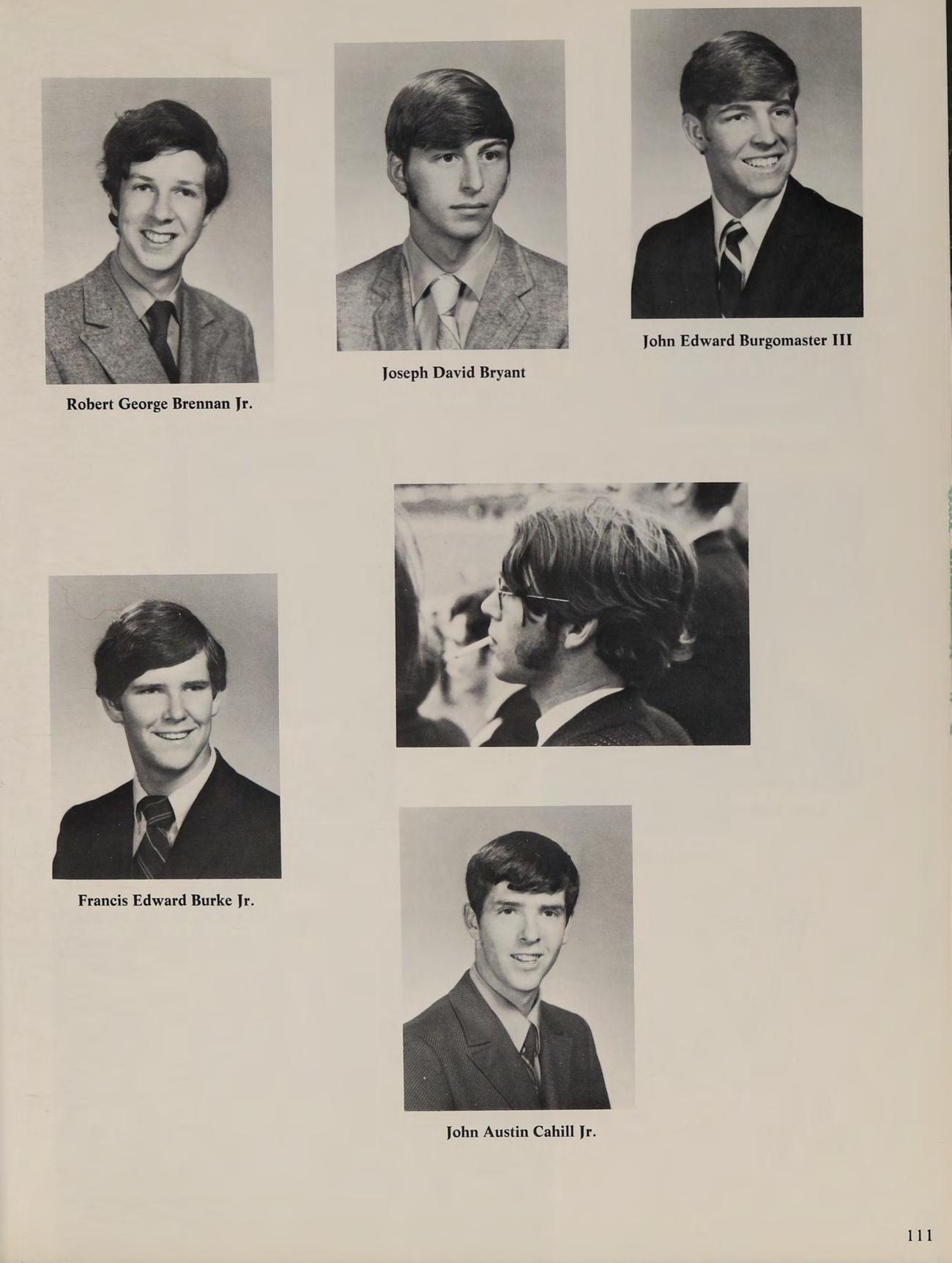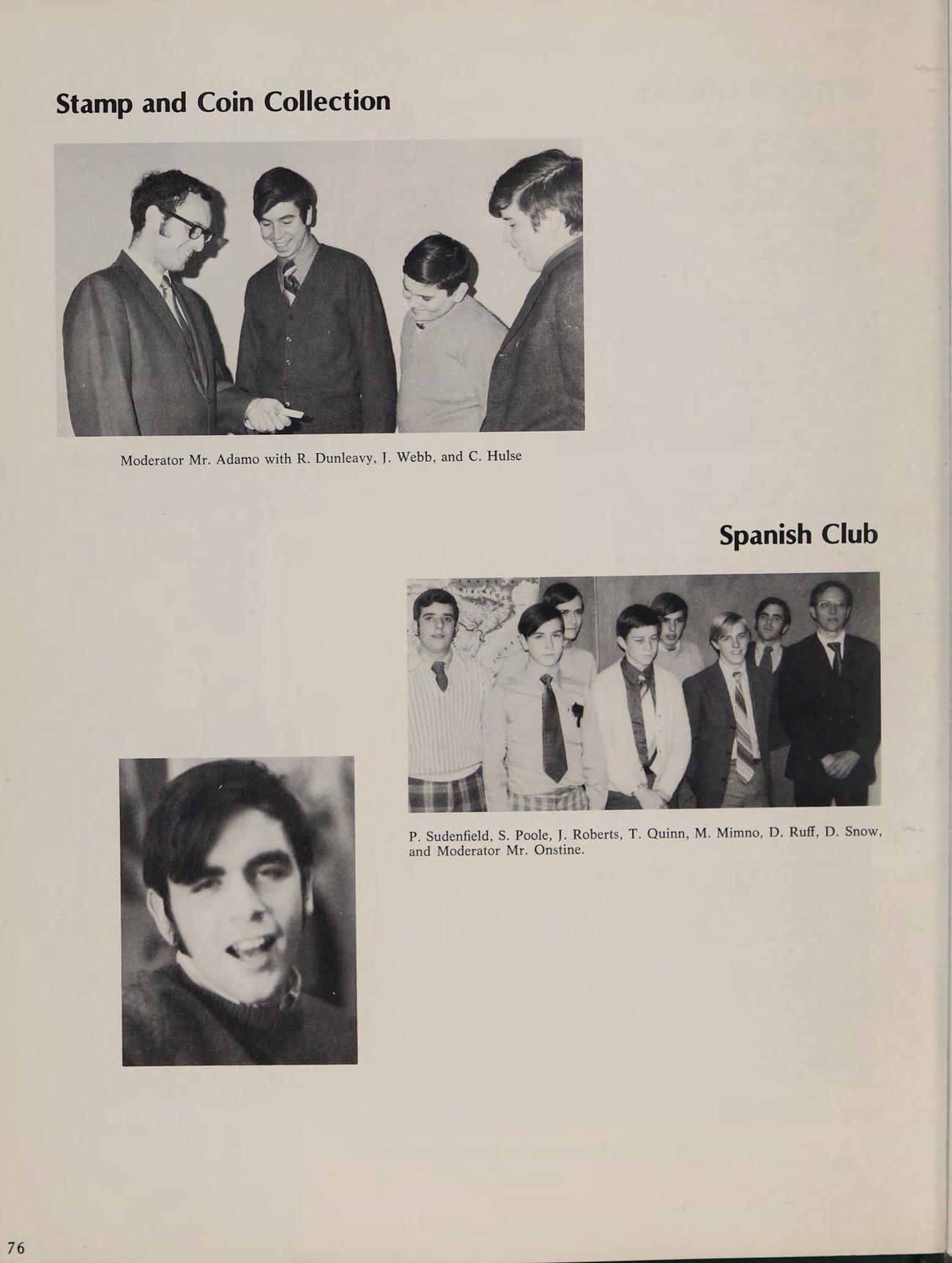 James D. Sullivan III 135 Berkley St., Lawrence; Chess Club 1, 2, 3; “Legend” 1; A.P.H.R.S. 4(Cougar) ; “Omega” 4; Explorers 2, 3, 4; Intramurals 1, 2, 3; ID Club 4; Folk Group 4.