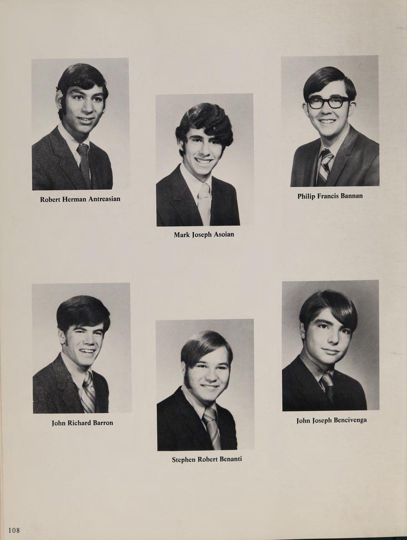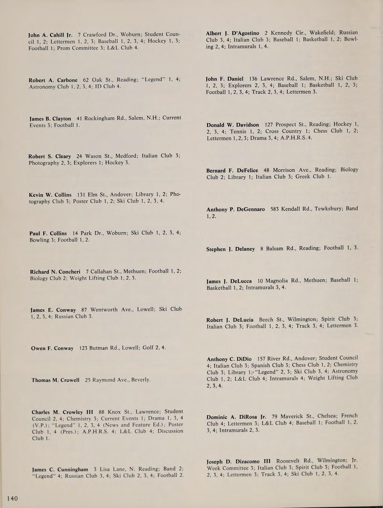 Alan F. Sabatino 12 Makechine Dr., Burlington; Chess Club 1: Lettermen 2, 3; Spirit Club 1, 2; Italian Club 3; L&L Club 4; Basketball 2; Bowling 2, 4; Football 2, 3, 4; Intramurals 3, 4.