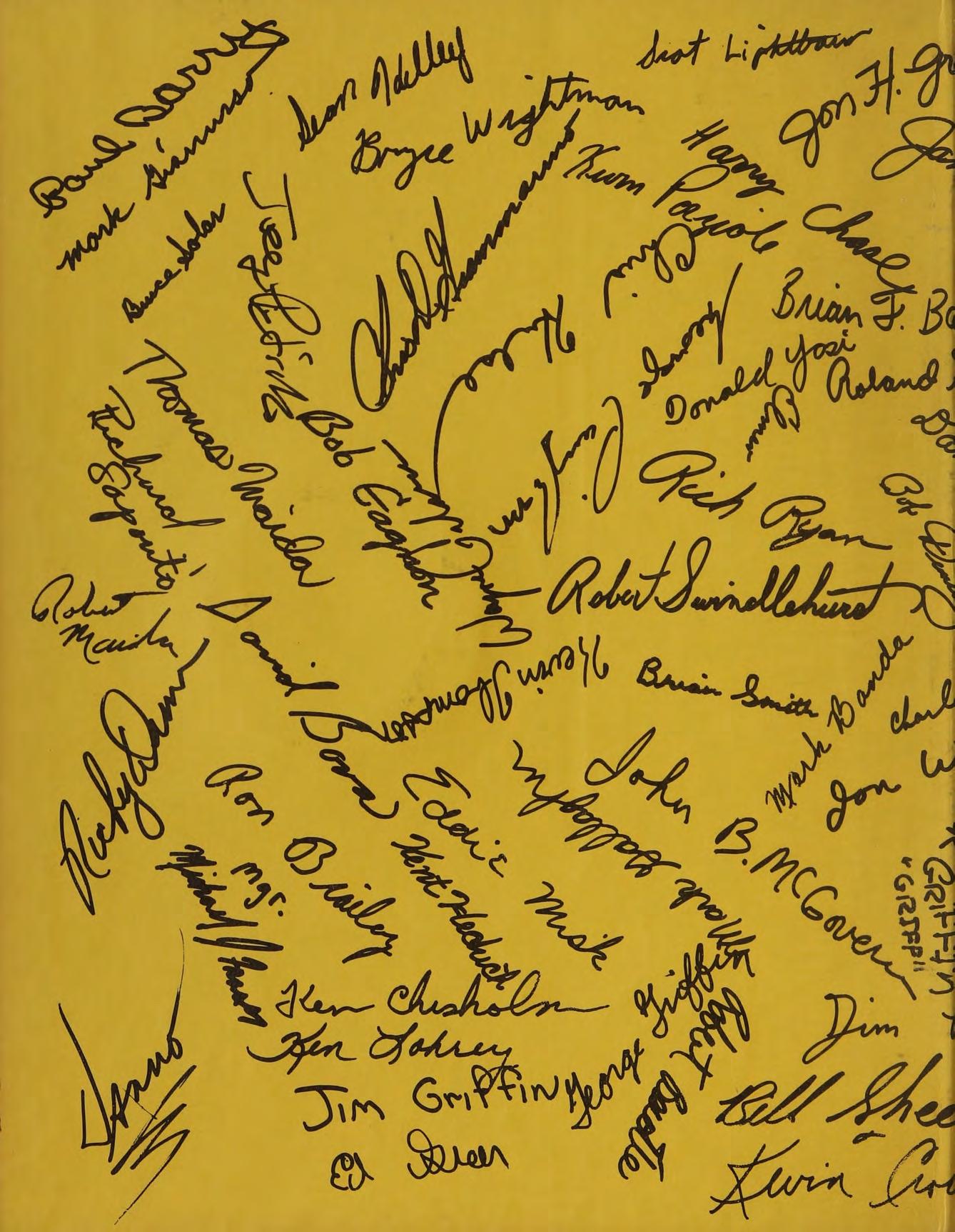 James F. Griffin 6 Gloria Cir., Burlington; Nickname: Big Time; Hero: Vince Lombardi; Favorite Quote: Don’t trust man who doesn’t drink. Activities: Football 1,2,3,4, (Varsity Letter 3,4); Intramural Hockey 3; Basketball 1,2,3,4, (Varsity Letter 3,4); Baseball 1,2,3,4, (Varsity Letter 3,4).