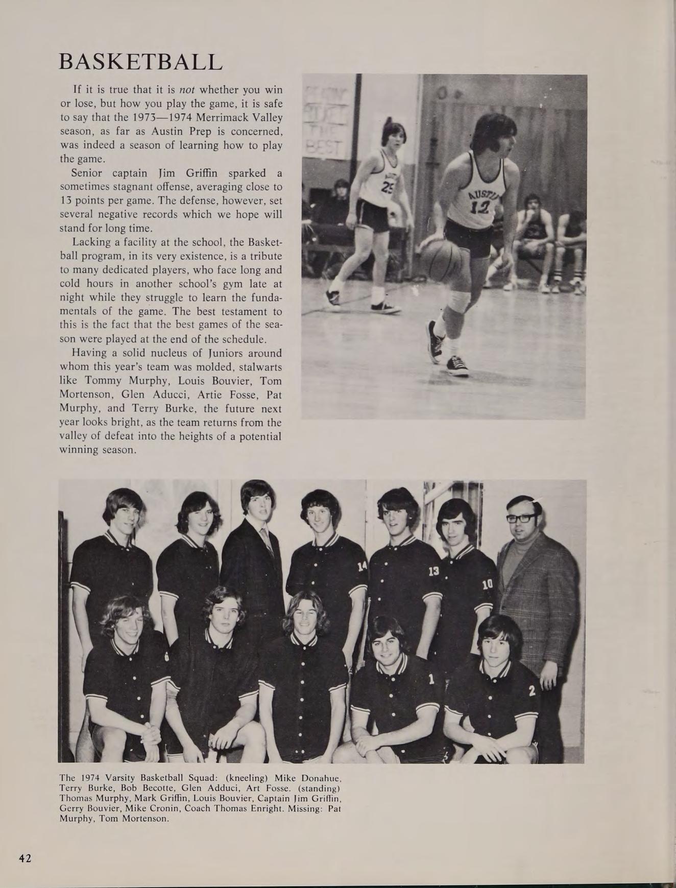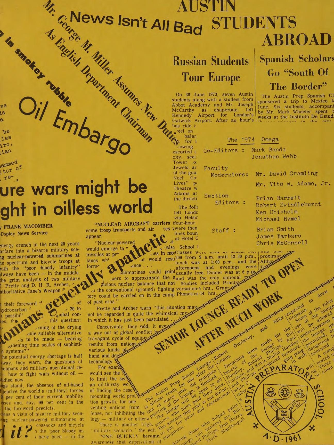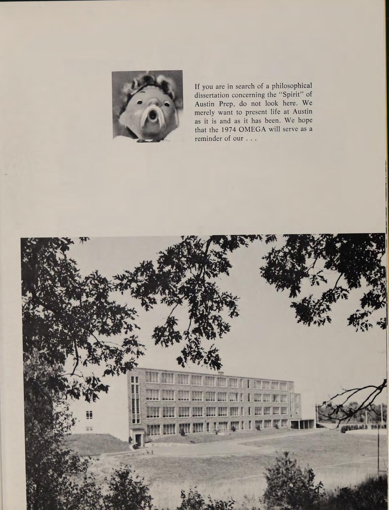 If you are in search of a philosophical dissertation concerning the “Spirit” of Austin Prep, do not look here. We merely want to present life at Austin as it is and as it has been. We hope that the 1974 OMEGA will serve as a reminder of our...