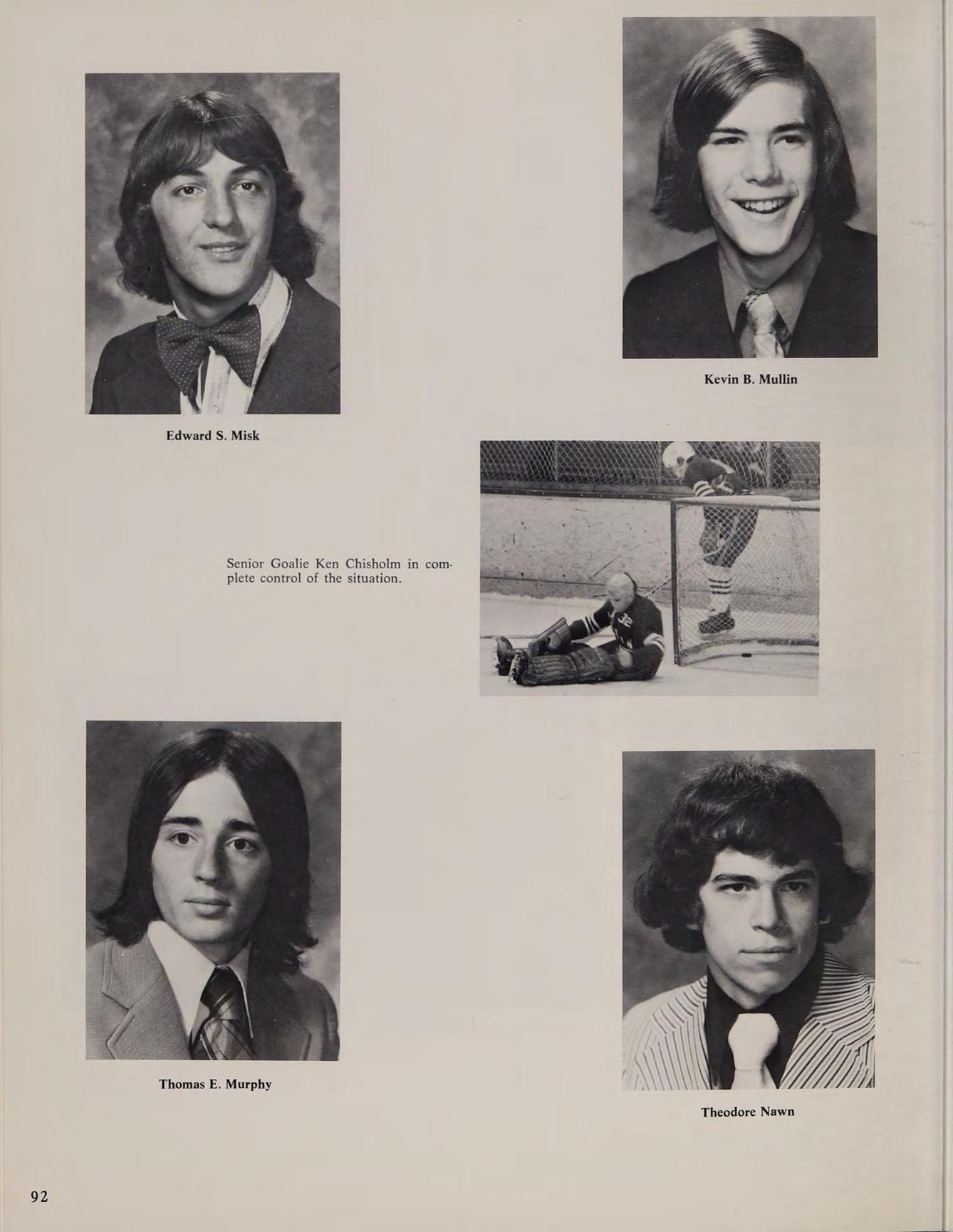Thomas E. Murphy 8 Beaver Brook Rd., Burlington; Nickname: Mother; Hero: Alice Cooper; Favorite Quote: Heavy Duty. Activities: Student Council 3,4; State Advisory Council; Hockey 2, 3,4; Football 2,3,4; Track 2,3,4; Softball 3,4. Remembered As a lover not a fighter.
