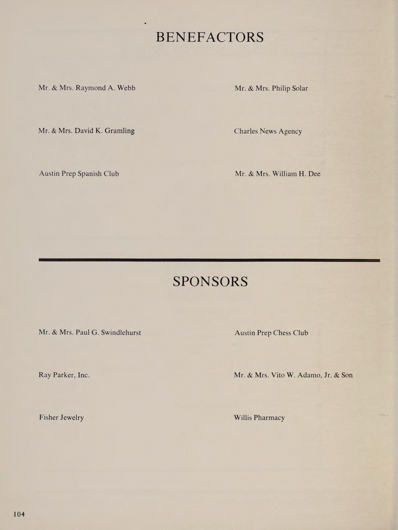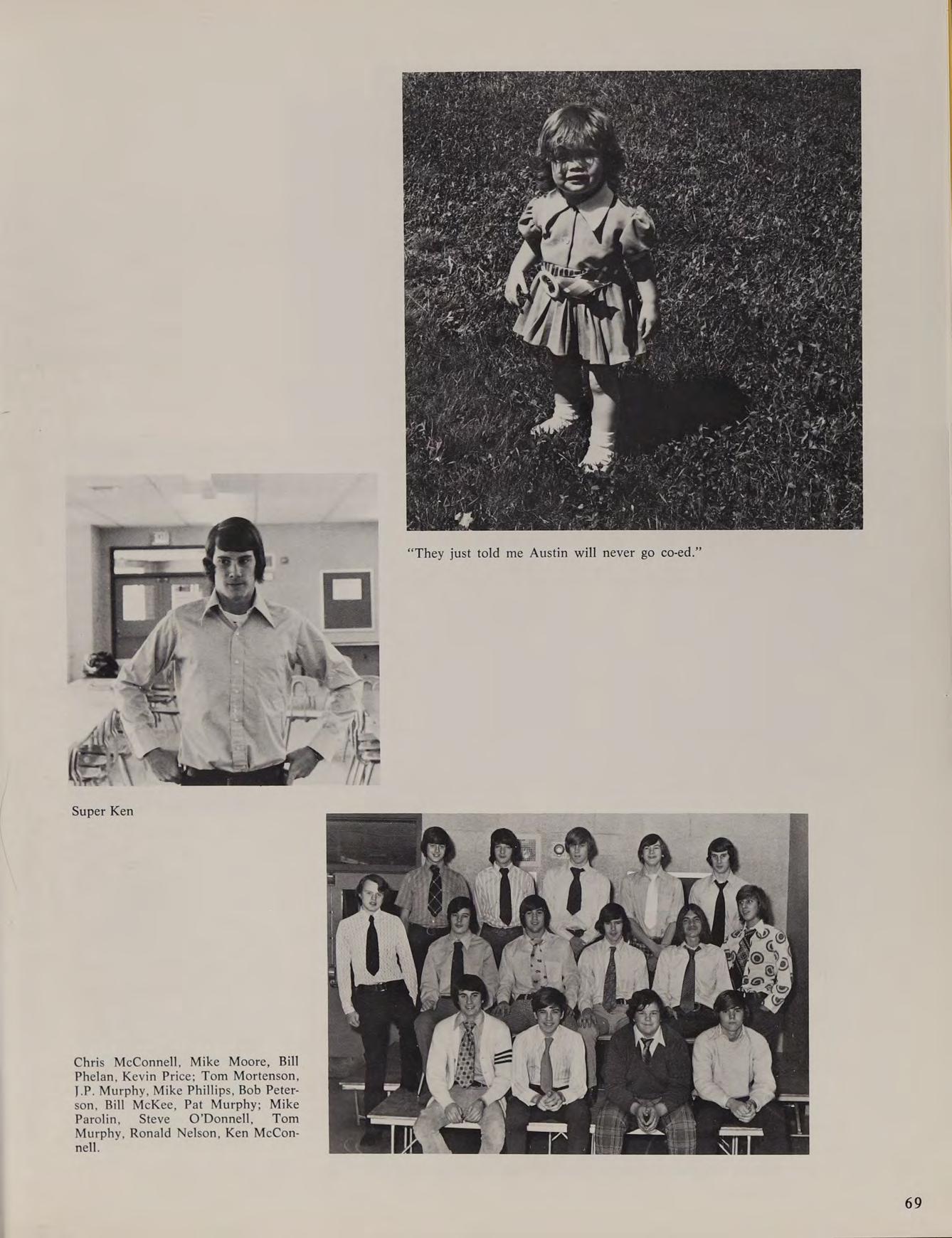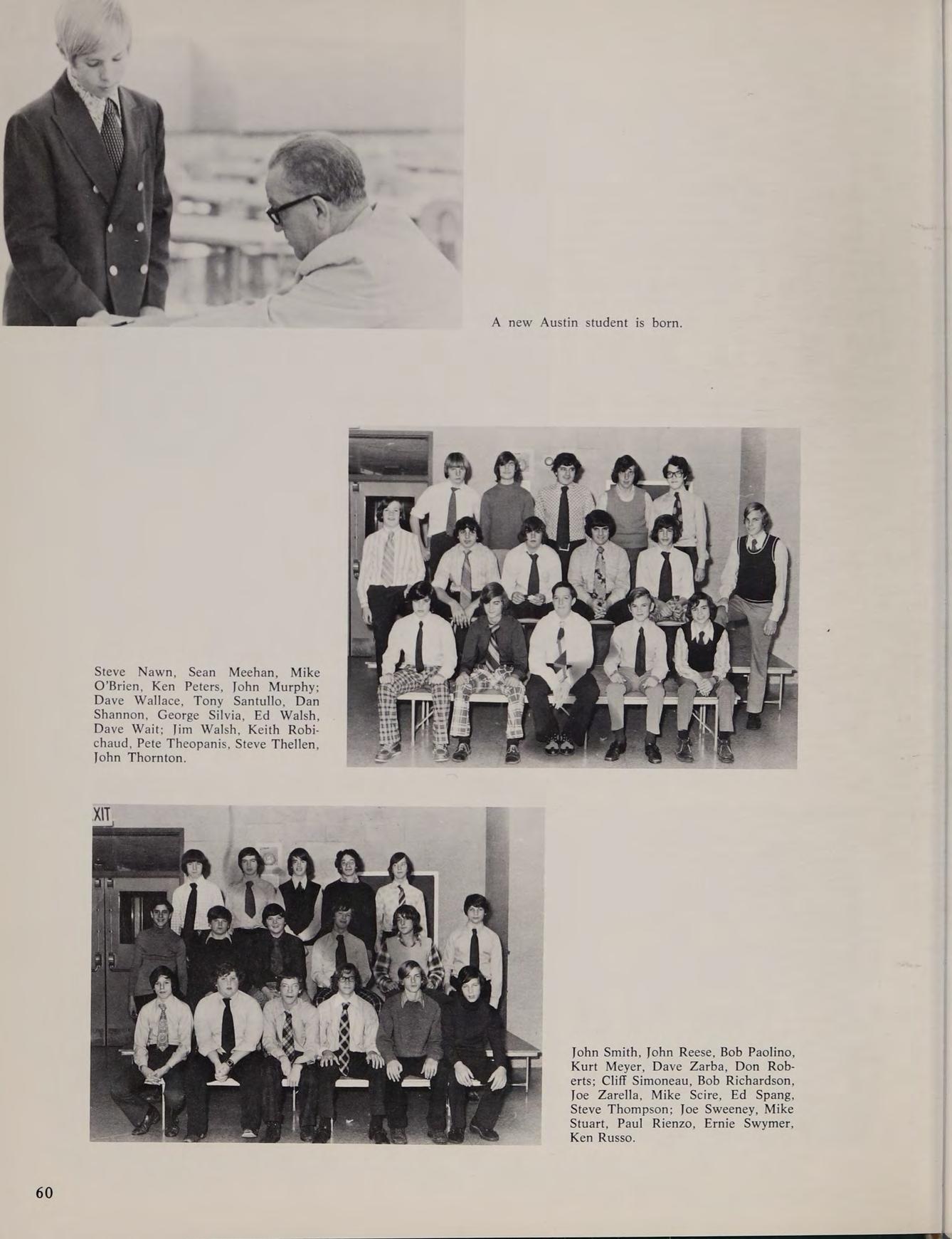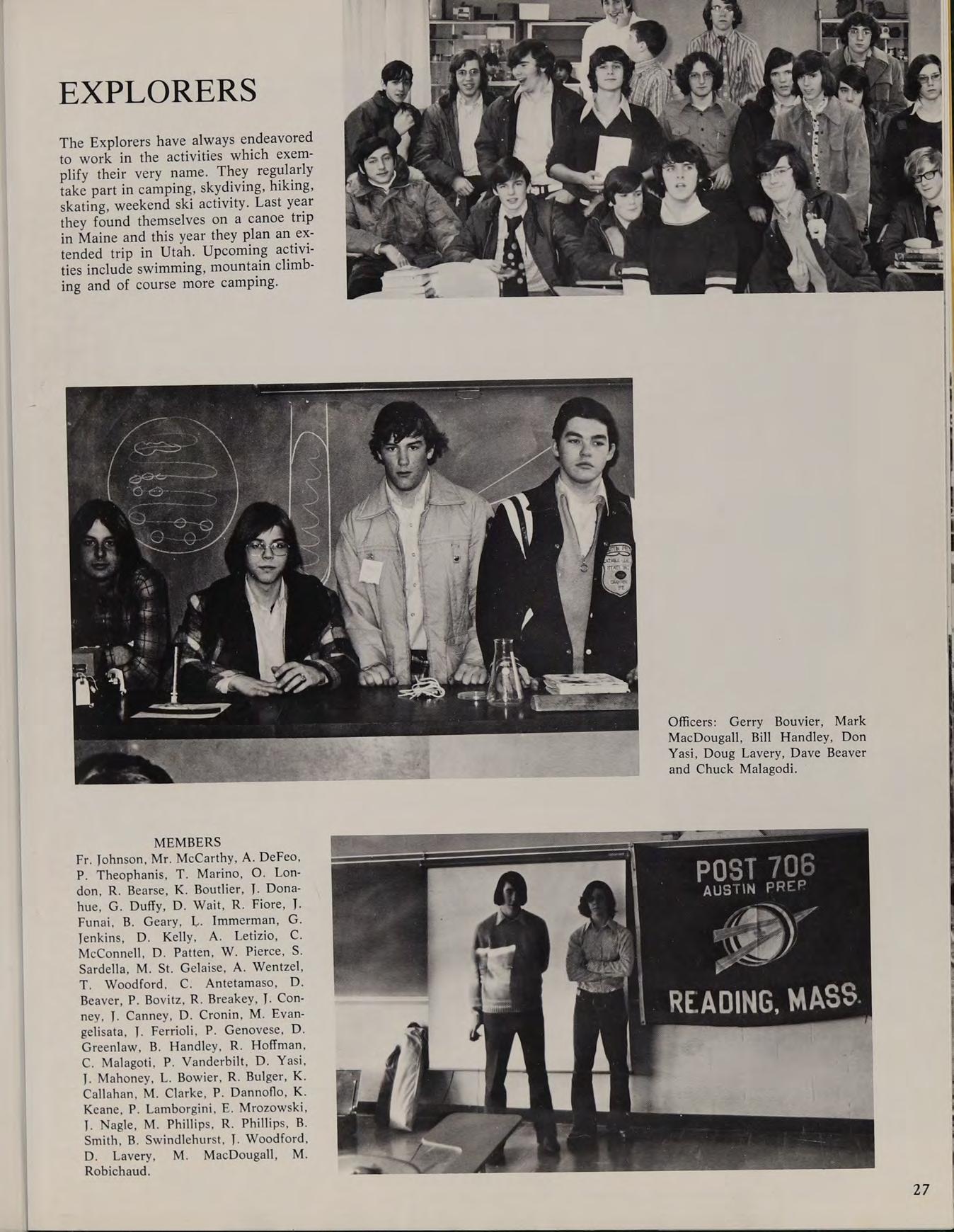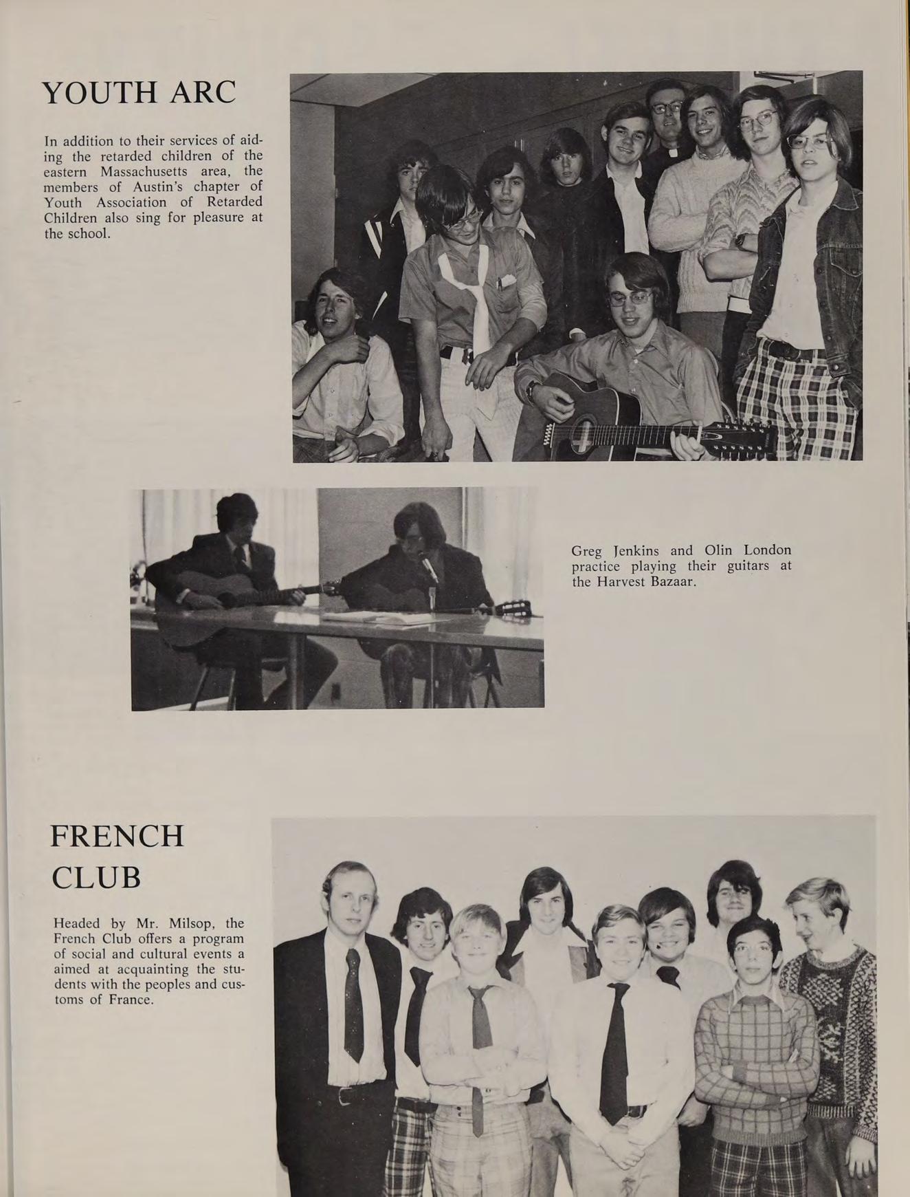 The Spanish Club is headed by Mr. Wheeler and offers a program to enlighten the Austin student on the social and cultural ways of Spain and other Spanish speaking countries. Last summer, members toured Mexico. Members are: Doug Patten. Mike Moore, Bob Paolino, John McCloud, Mike St. Gileas, Jon Lindsay, Walter Doucette, John D’Ambrosio, Rich Sweeney, Mike Parolin, Ken Marchinko, Ken Chisholm, Dan Hurley, and Bill Phalen.