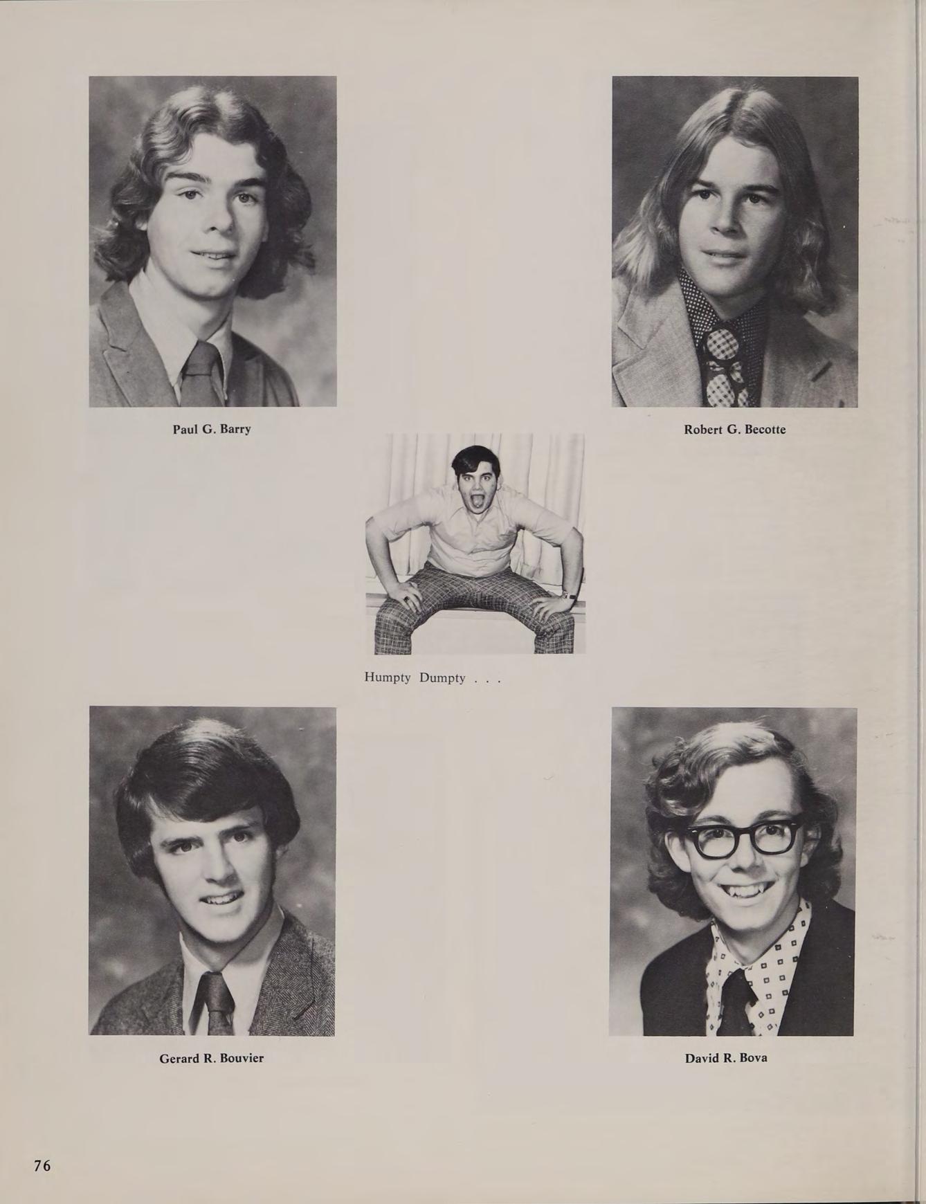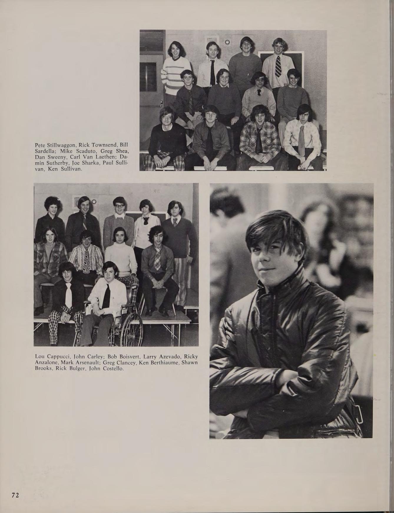 Robert F. Swindlehurst 17 High St., Wakefield; Activities: Explorers 1,2,3,4; Chess Club 4; Omega 4; Legend 4; Extra Austin Prep: Most Blessed Sacrement C.Y.O., Most Blessed Sacrament Chi Rho Delegate, Melrose Y.M.C.A Leaders Club, Melrose Y.M.C.A. Day Camp Counsellor; Awards: YMCA Best day camp counsellor award ’71, ’72, Y.M.C.A. Leaders Training Week Award ’73; Nickname: Bob; Hero: Perry Mason; Favorite Quote: Justice is for all; not just those that can afford it; Remembered for: As an individual who one can rely upon for help if it was ever needed.