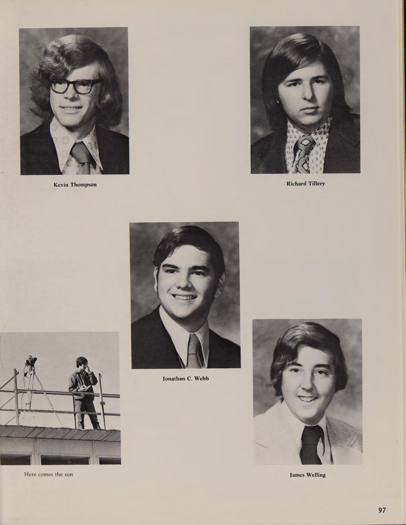 Jonathan C. Webb 61 Rivercliffe Road, Lowell; Activities: Spanish Club 3,4; Outdoor Sport 3,4; Journalism Club, Science Club 3,4: Omega 2,3,4; Photography 2; N.H.S. 4; Black Friars 1,2,3; Math Club 1,2,3; The legend 2,3,4; Chess Club 3,4; Activity Officer: Spanish Club Treasurer 3; Co-President 4; Student Council Secretary 4; Omega Co-Editor 4; Sports: Intramural Street Hockey 2,4; Softball 4; Awards: NEDT Certificate 1,2; Quill and Scroll Society 3,4; National Merit Letter of Commendation 4; Who’s Who 3,4; Nickname: Jon; Hero: Archibald Cox; Favorite Quote: You All————