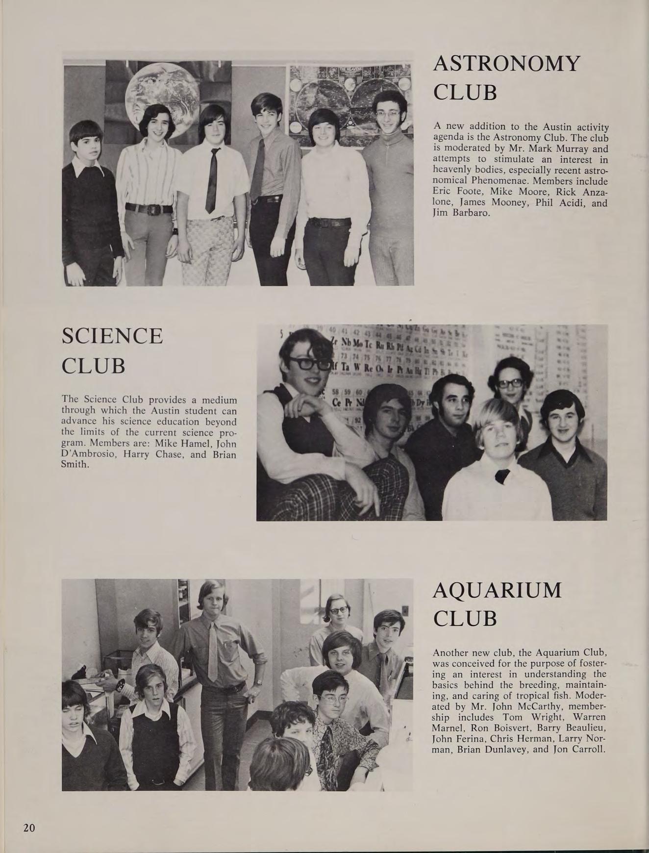 A new addition to the Austin activity agenda is the Astronomy Club. The club is moderated by Mr. Mark Murray and attempts to stimulate an interest in heavenly bodies, especially recent astronomical Phenomenae. Members include Eric Foote, Mike Moore, Rick Anzalone, James Mooney, Phil Acidi, and Jim Barbaro.