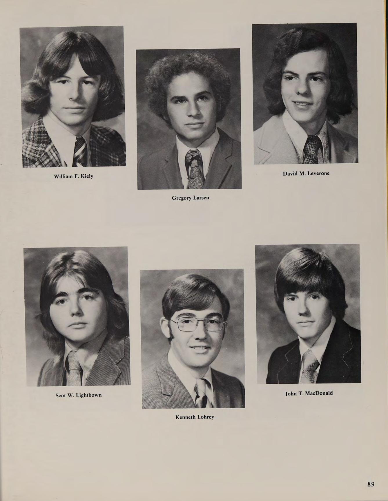Greg Larsen Old Neck Rd., Manchester; Nickname: Agile Greg; Hero: Bugs Bunny; Favorite Quote: God Bless America. Activities: Football 1; Ski Club; Ski Team 1,2,3,4, (Varsity Letter 2); Softball 4. Remembered for The Big Mack, Speedy Larsen Fight of the Century.