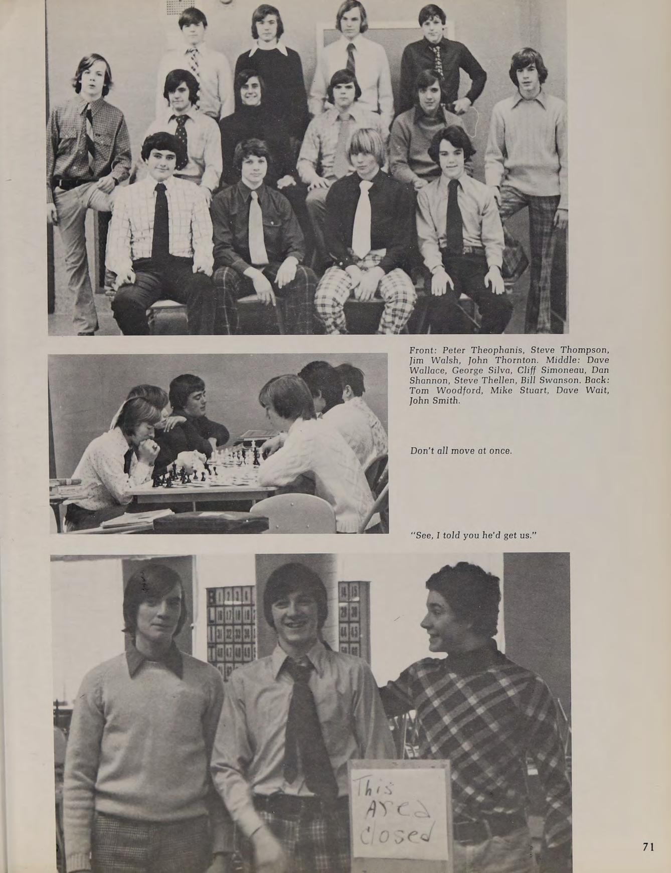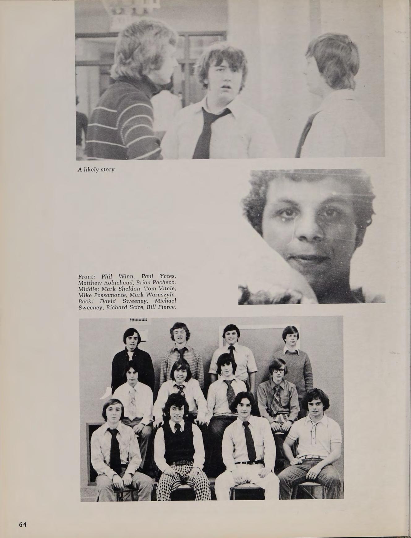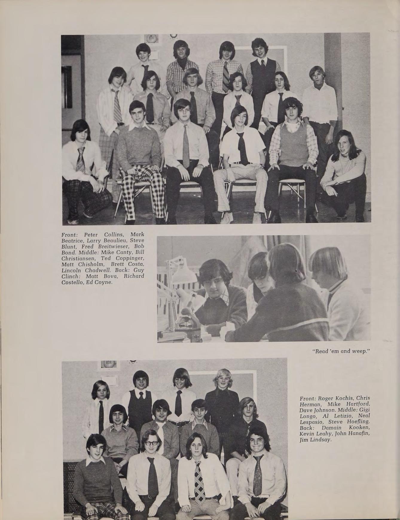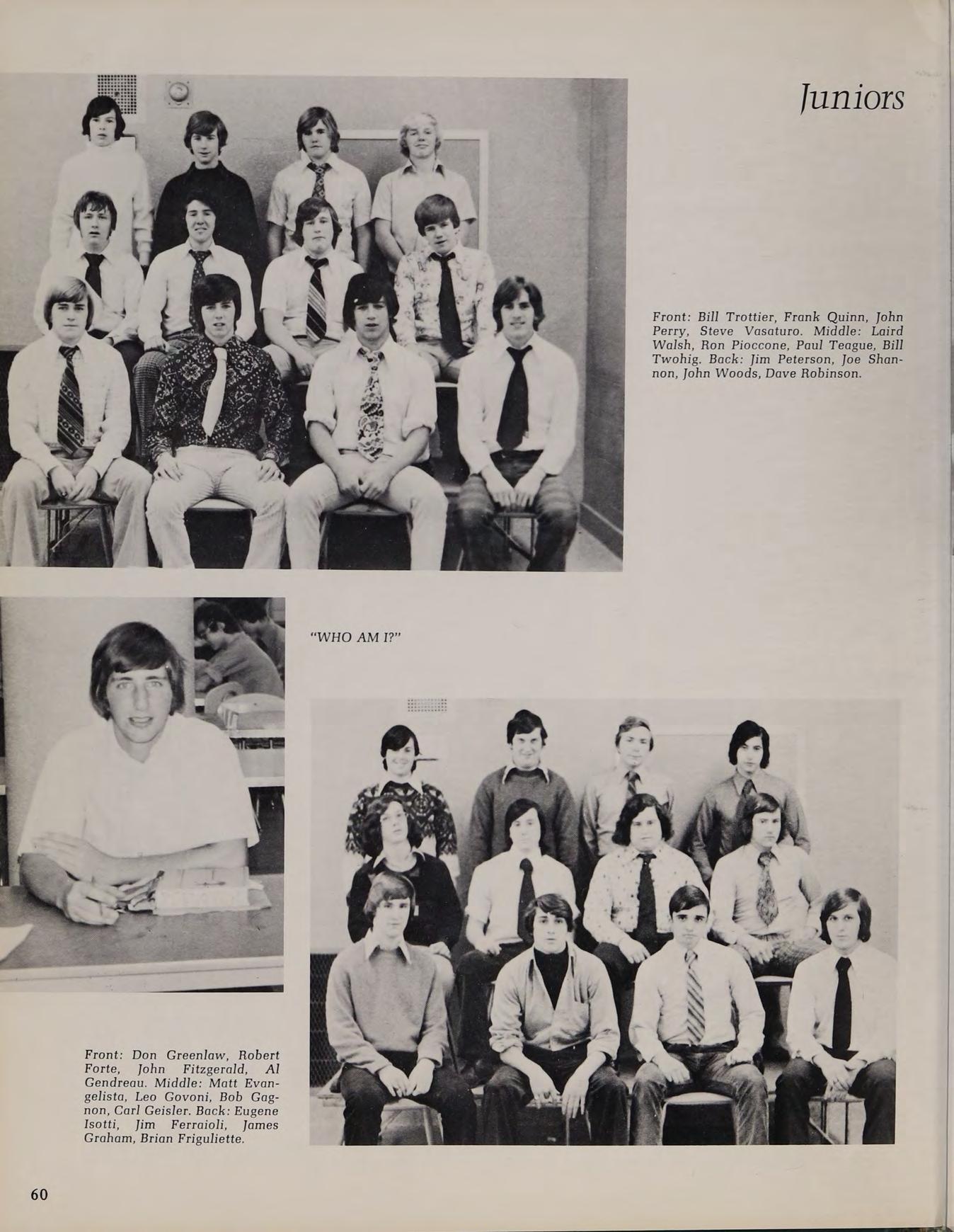 1975 Varsity Hockey Team: Eastern Massachusetts Division II Finalists: Front Row: Don Roberts, Lou Cappucci, Rick Silvia, Captain Ron Nelson, John Woodford, Wayne Taylor, Steve Vasaturo. Second Row: Coach Arthur Ruggles, manager Carl Van Laetham, Dan Shannon, Thom Lawler, Jeff Donovan, Tom Silvia, Chuck Gaudet, Mike O’Connor, Tony Santullo, Coach Gary Bishop. Third Row: Brett Costa, Ken Berthiaume, Paul Miller, Tom Carr, Charles Antetomaso, Mark Sheldon, Rich O'Neill.