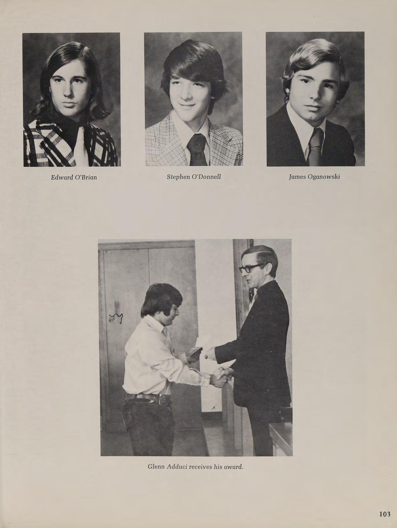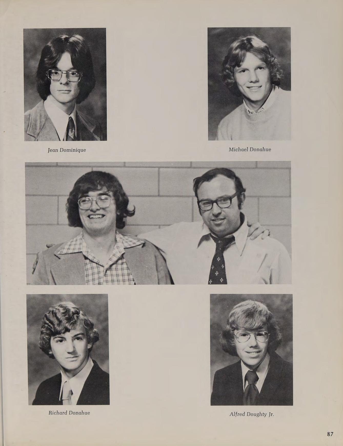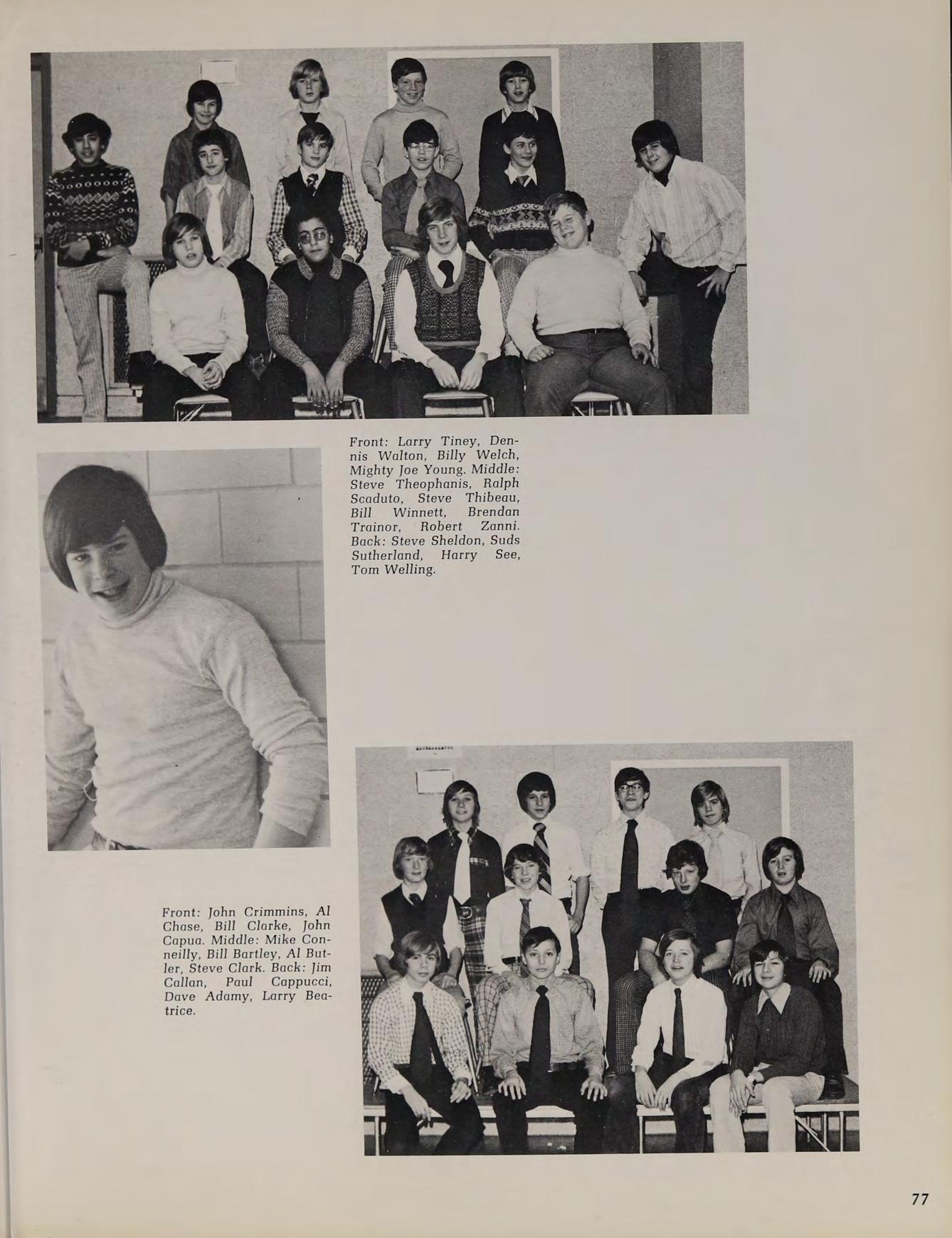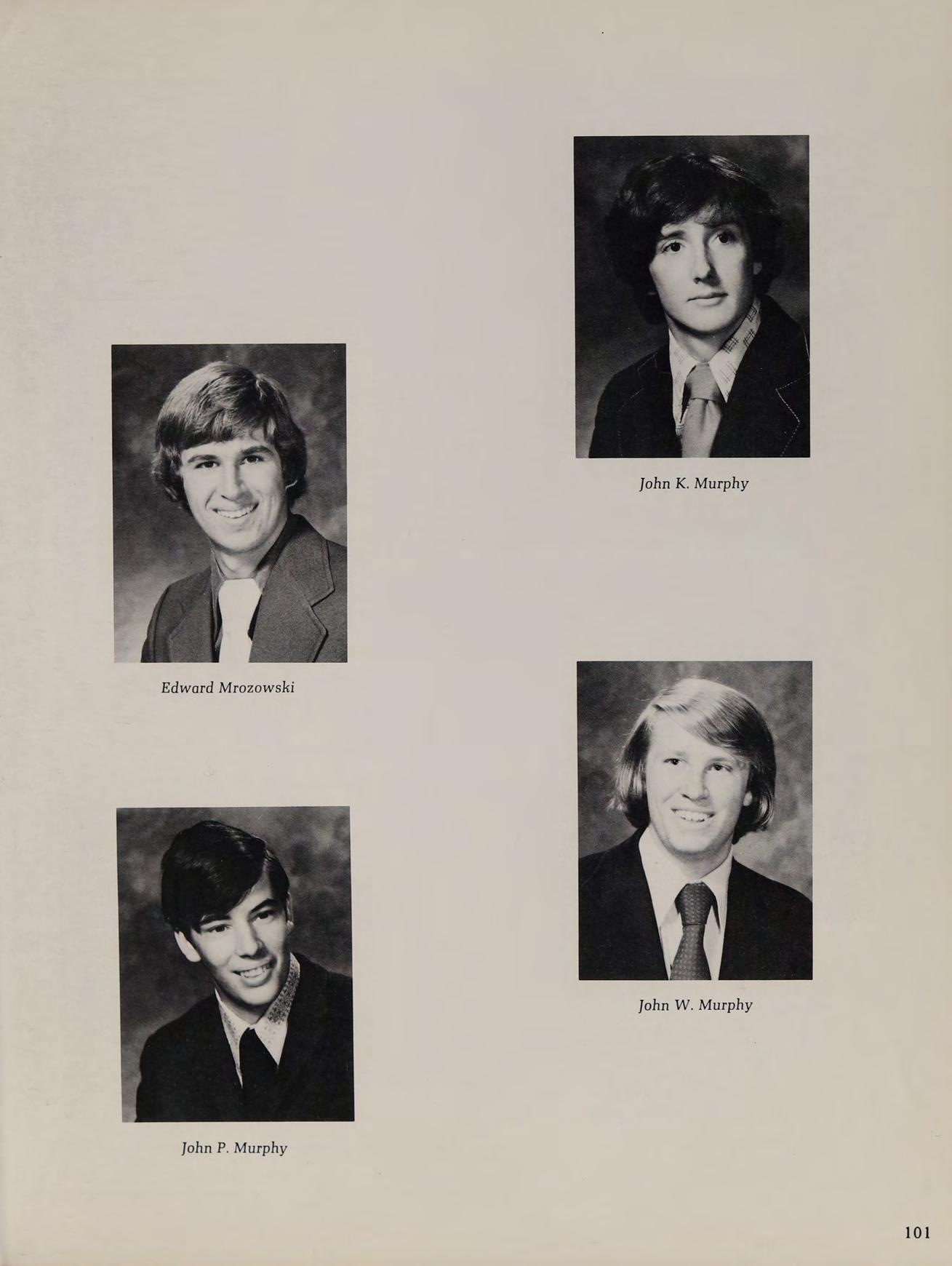 1975 Varsity Winter Track Team: front row: B. Trainor, C. Pierce, S. Thompson, T. O’Brien, J. Glocking, M. Beatrice, J. DiBiase, P. Graczik, J. Winnett. second row: J. Galvin, P. Rienzo, M. Govoni, J. Ricci, T. Dunn, L. MacLean, R. Bearse, W. Pierce, J. Bentubo, D. Adamy, R. Kowalchik. third row: Coach Lehane, J. Wells, E. Swymer, T. Hines, P. Genovese, M. Phillips, S. O’Donnell, P. Lambroghini, M. Loiselle, K. McConnell, M. Donahue, B. Sheehan, B. Conte, W. Gallagher, Coach McDonough back row: J. Smith, K. Callahan, W. Geary, B. Dunlavey, J. Coneeny, J. Land, D. Kelly, G. Jenkins, D. Martin.