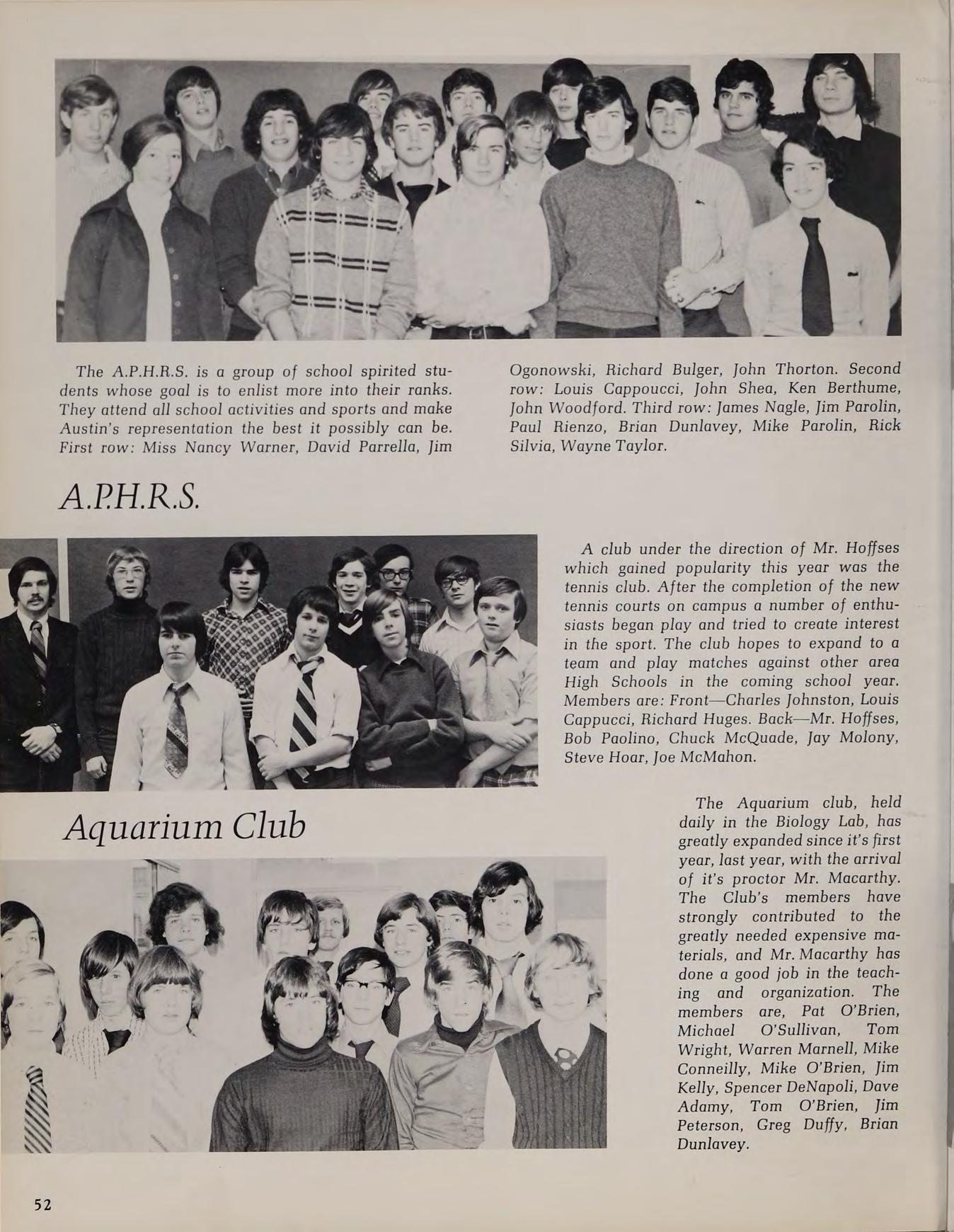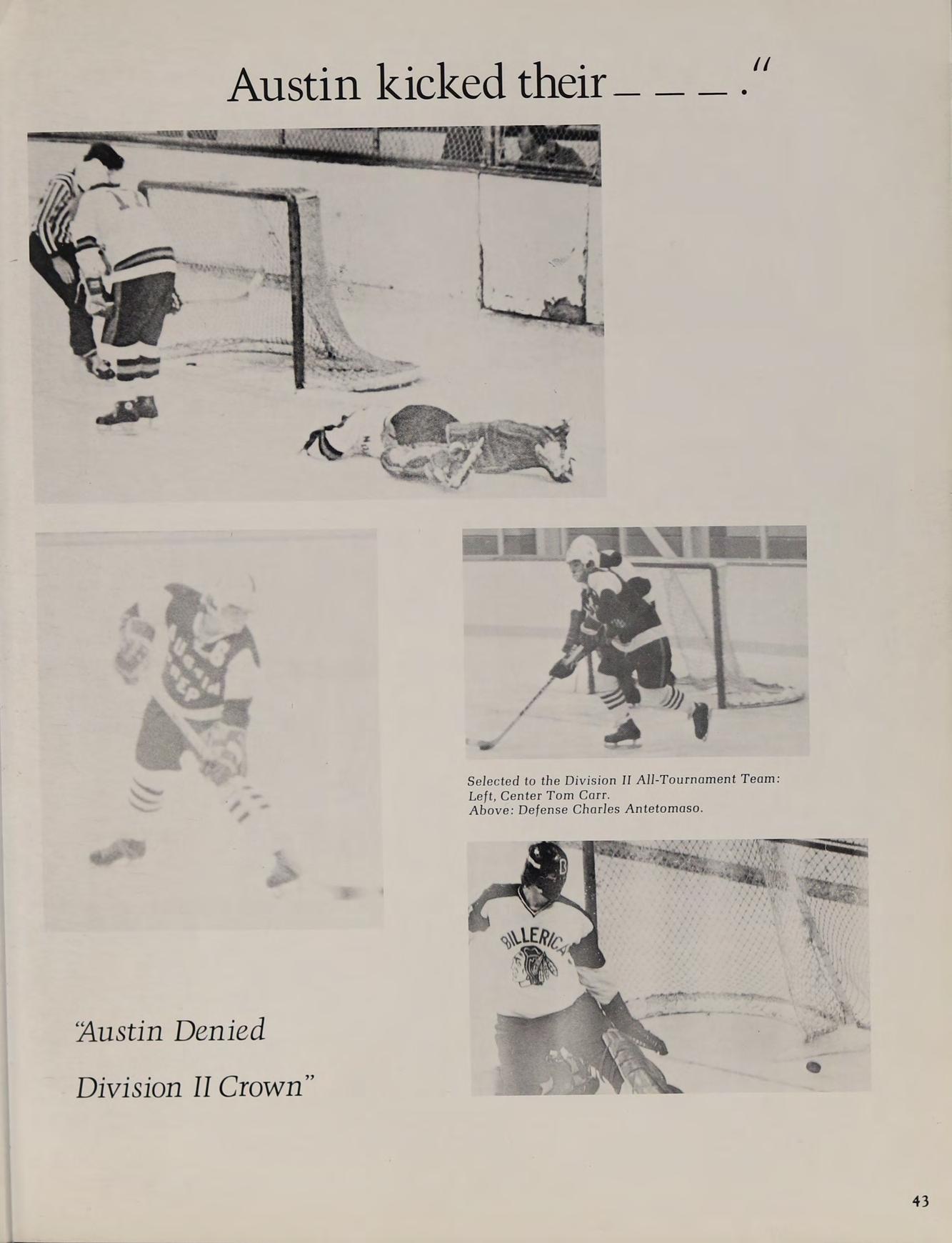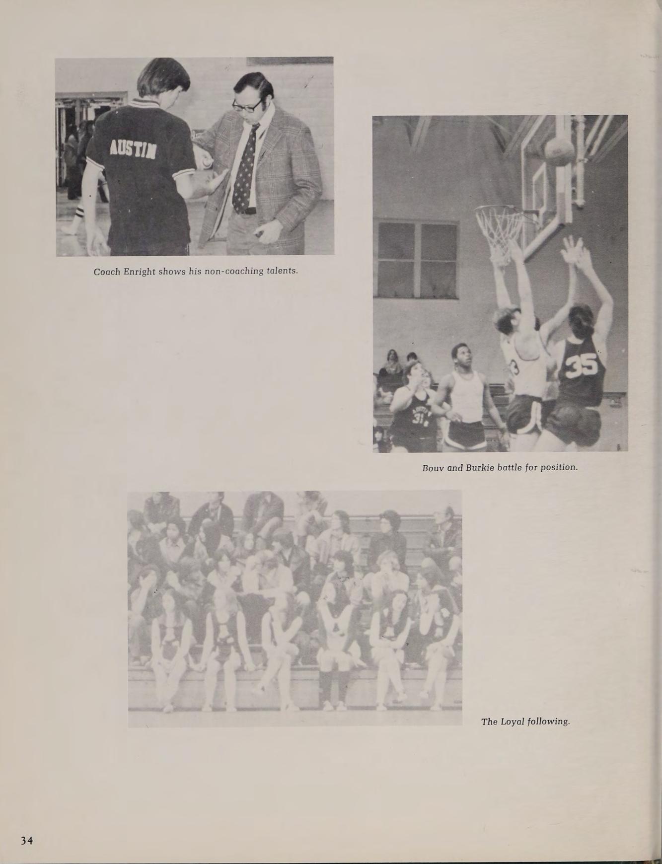 The 1974-75 Austin basketball team fought hard all season and gained the respect of their Merrimack Valley opponents. The team was led by co-captains Tom Murphy and Terry Burke. Lou Bouvier, Pat Murphy, Ted Coppinger, Tom Mortensen, and Art Fosse all distinguished themselves during this frustrating season. The able reserve corps of Kevin Keane, Ed O’Brian, and Kevin Dunlavey also contributed their talents.
