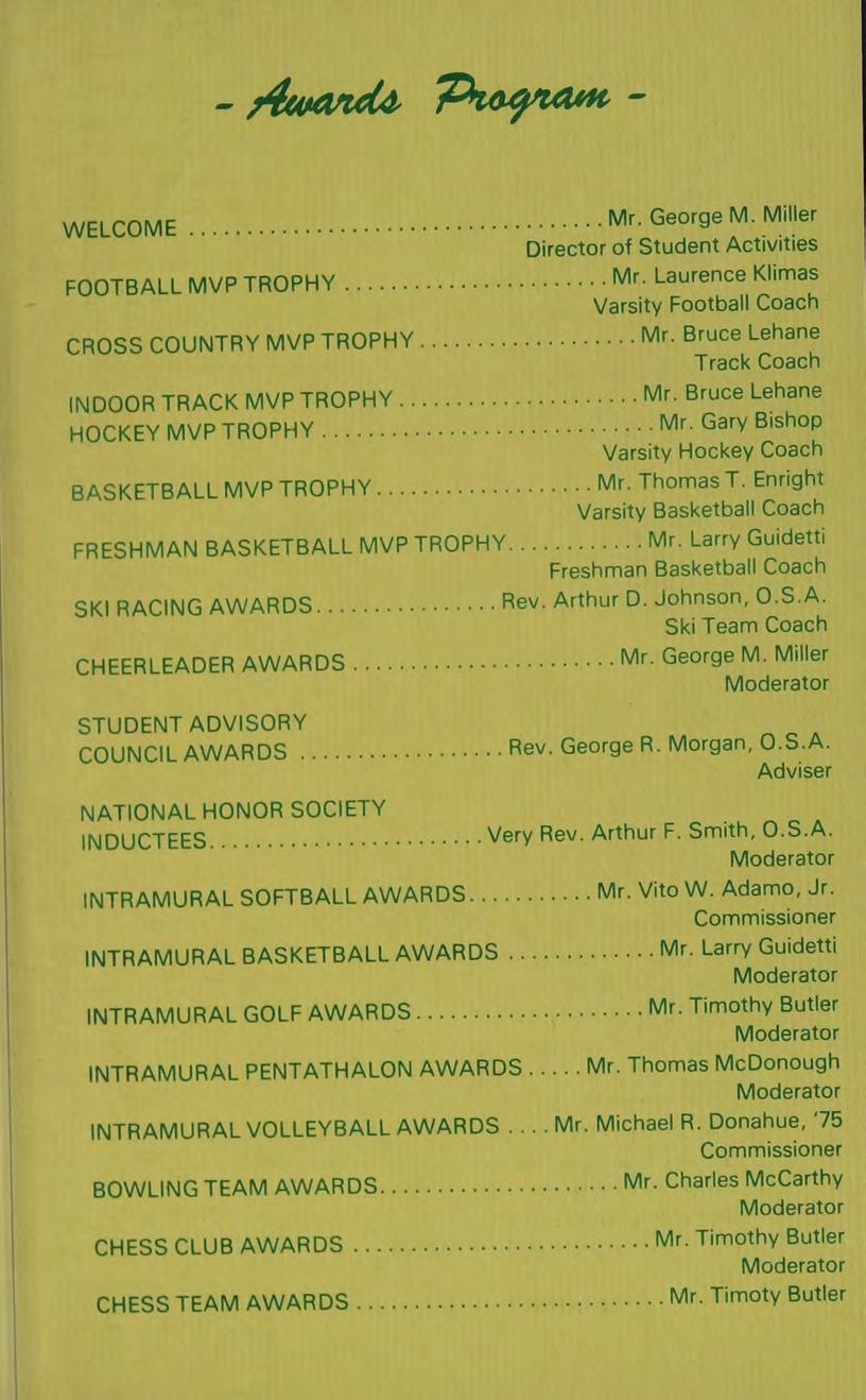 Very Rev. Arthur F. Smith, O.S.A. Prior of the Community B.A., M.A. Villanova University; Graduate Studies: Augustinian College, Catholic University; Subjects: Religion II, United States History, Modern European History; Activities: National Honor Society, Honors Help Club.