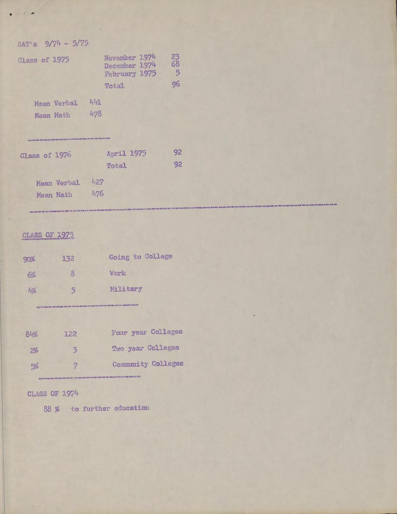 4 CLASS OF 1974 88 %- to further education