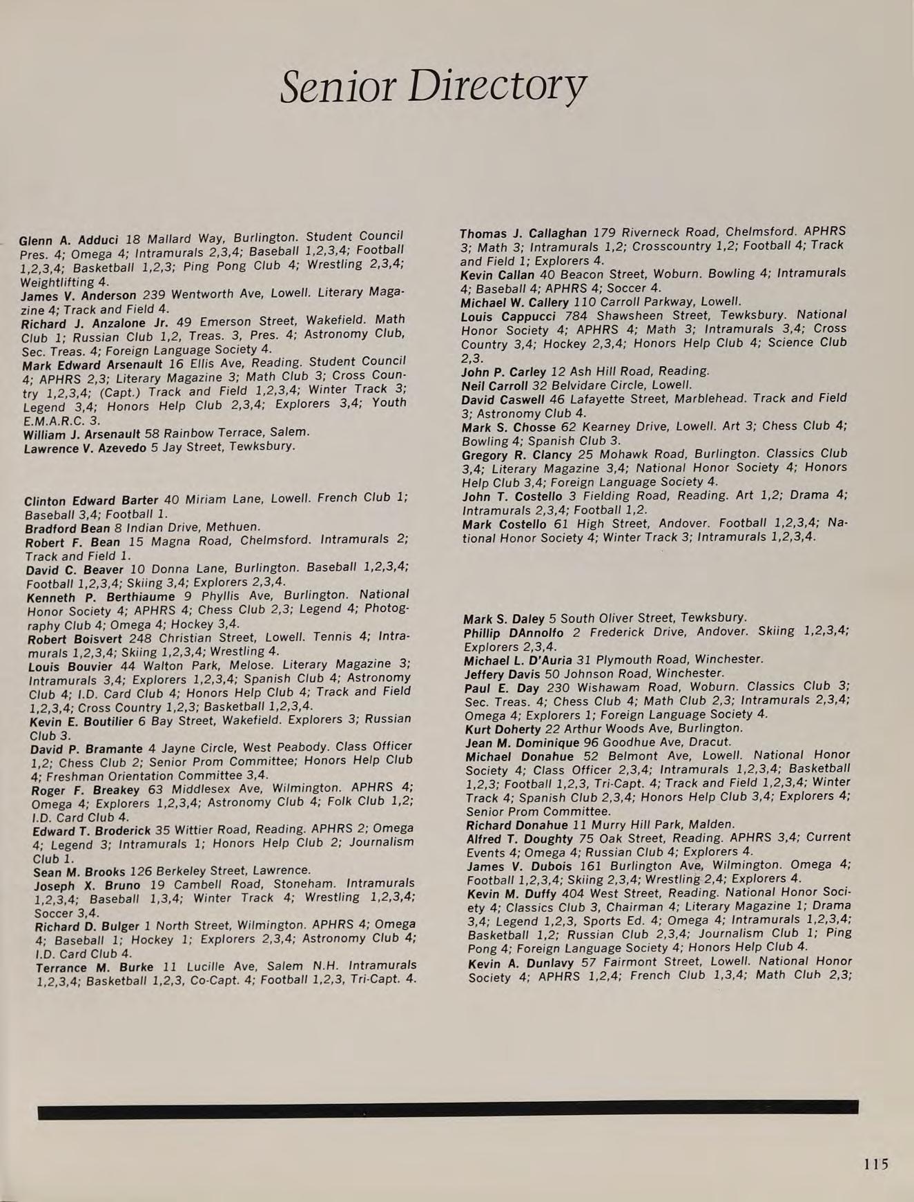 A.B. Boston College 1935; Subjects: Latin III, Language Arts, Introduction to Literature, American Government. Graduate Studies: M.Ed. Boston Teachers College, Harvard Extension Boston University. Graduate Degrees: M. Ed Boston Teachers College 1936. Activities: Bowling.