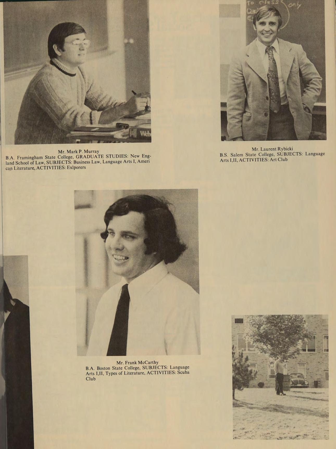 B.A. Framingham State College, GRADUATE STUDIES: New England School of Law, SUBJECTS: Business Law, Language Arts I, Ameri can Literature, ACTIVITIES: Exlporers
