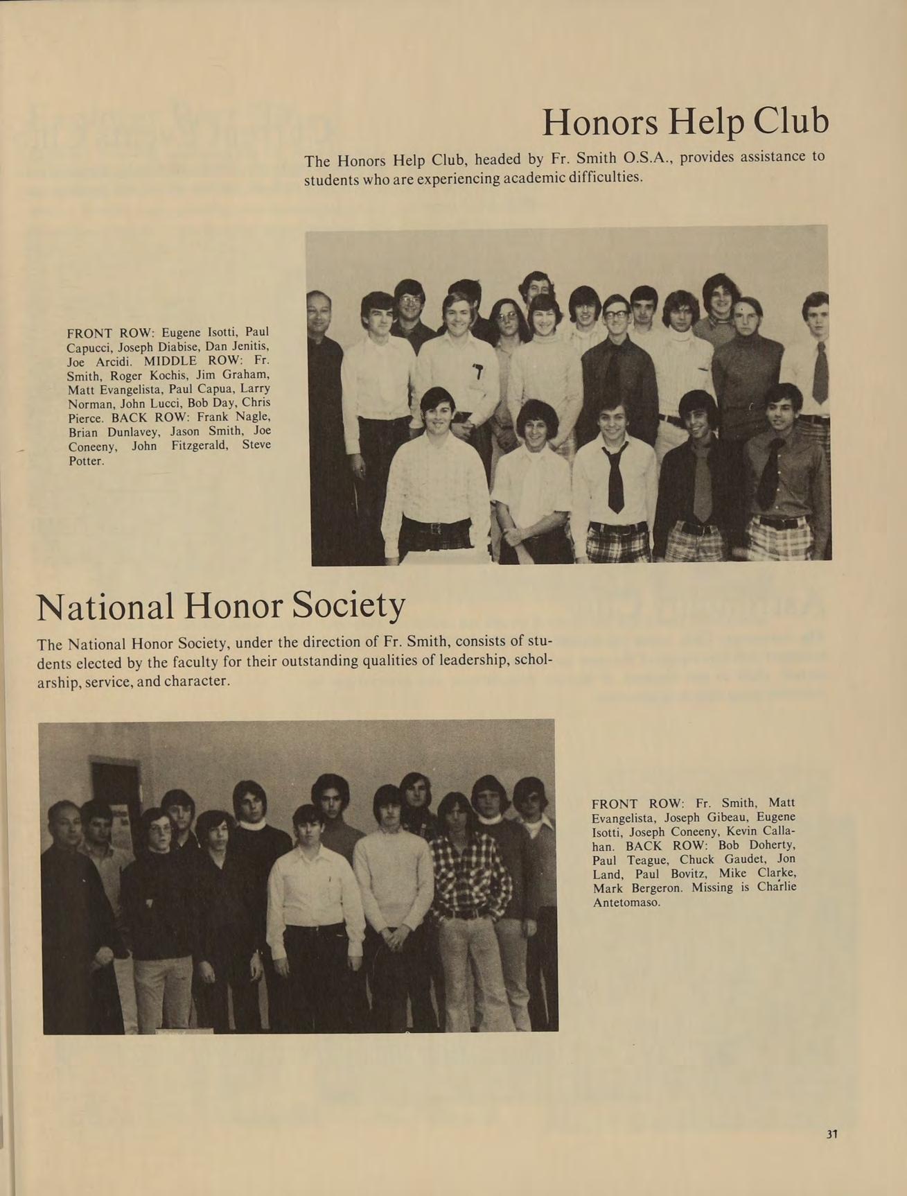 B.A. Villanova University, GRADUATE STUDIES: M.A. Villanova University, SUBJECTS: U.S. History Religion I], ACTIVITIES: National Honor Society, Honors Help Club