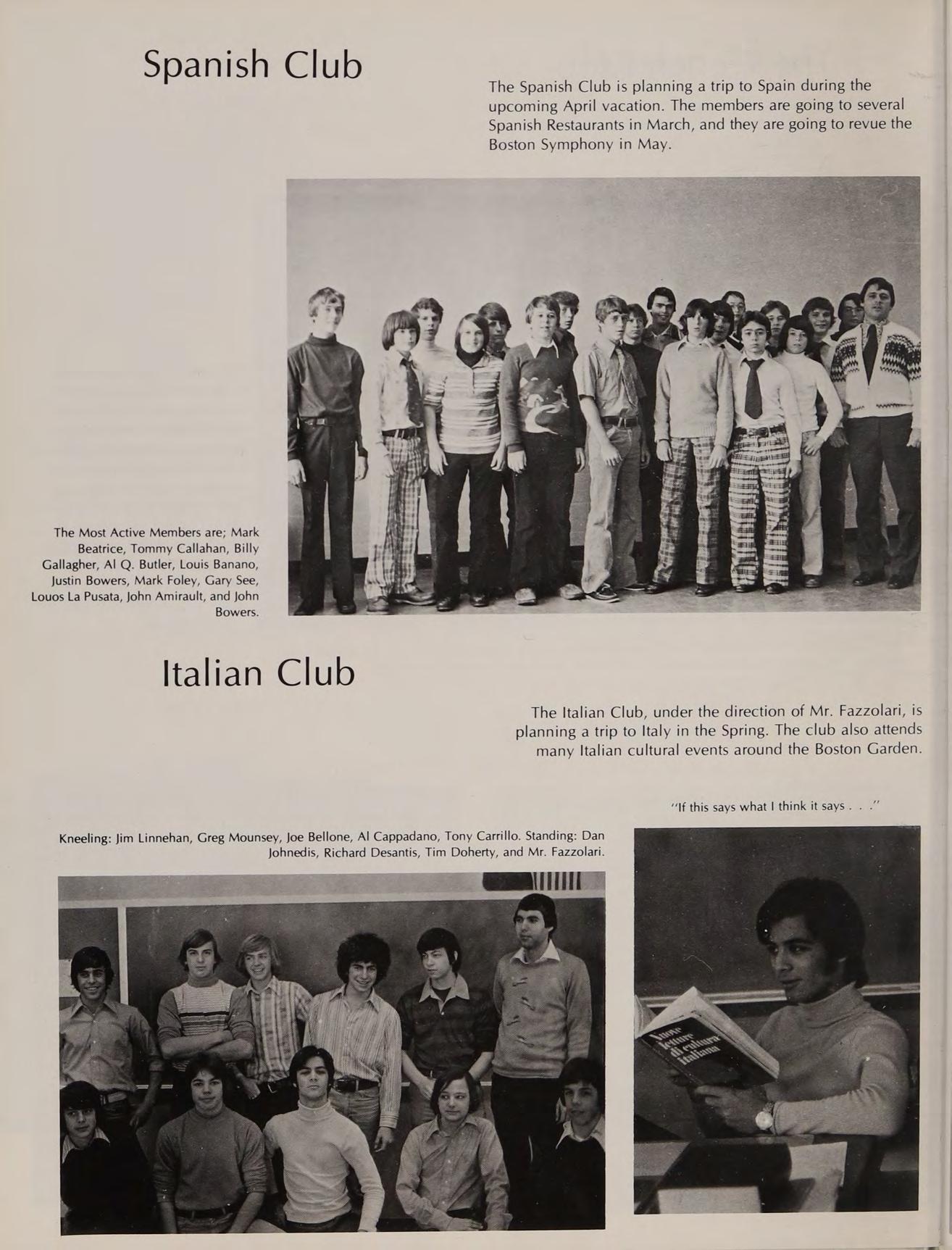 Mr. Vincent Fazzolari B.A. University of Massachusetts, Boston, SUBJECTS: Italian I, Il, Spanish |, ACTIVITIES: Italian Club, Spanish Club.