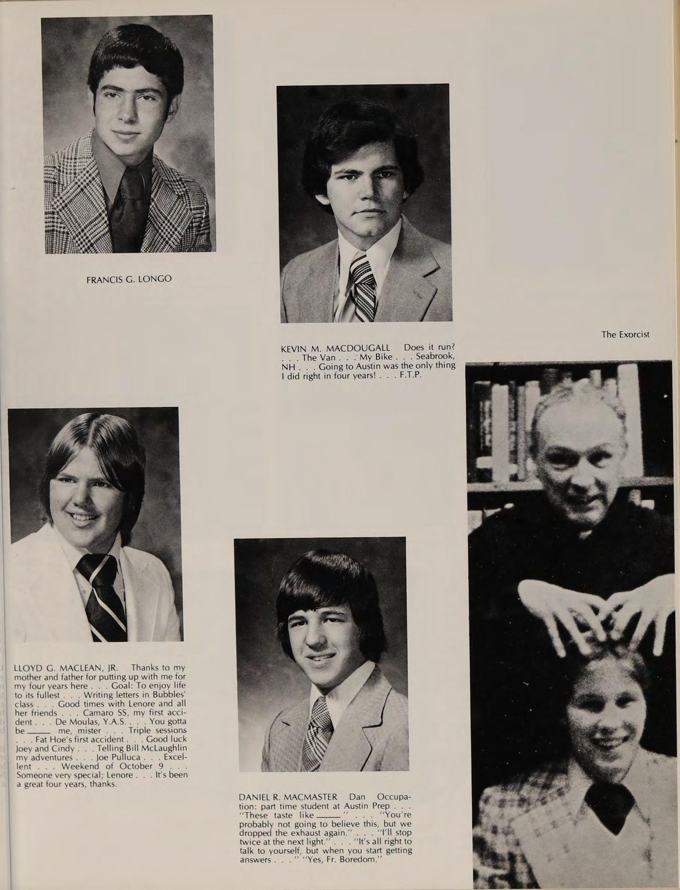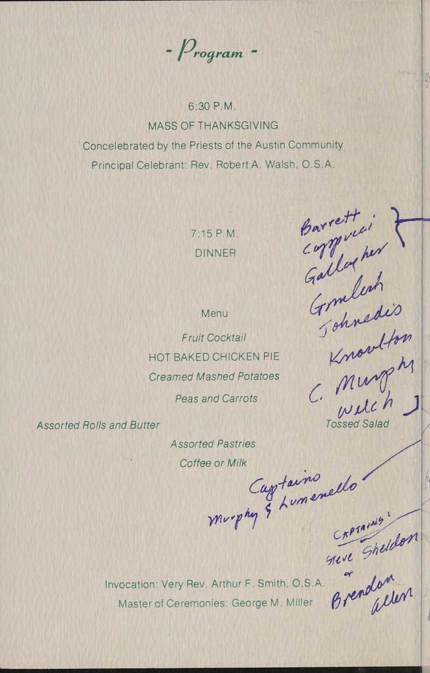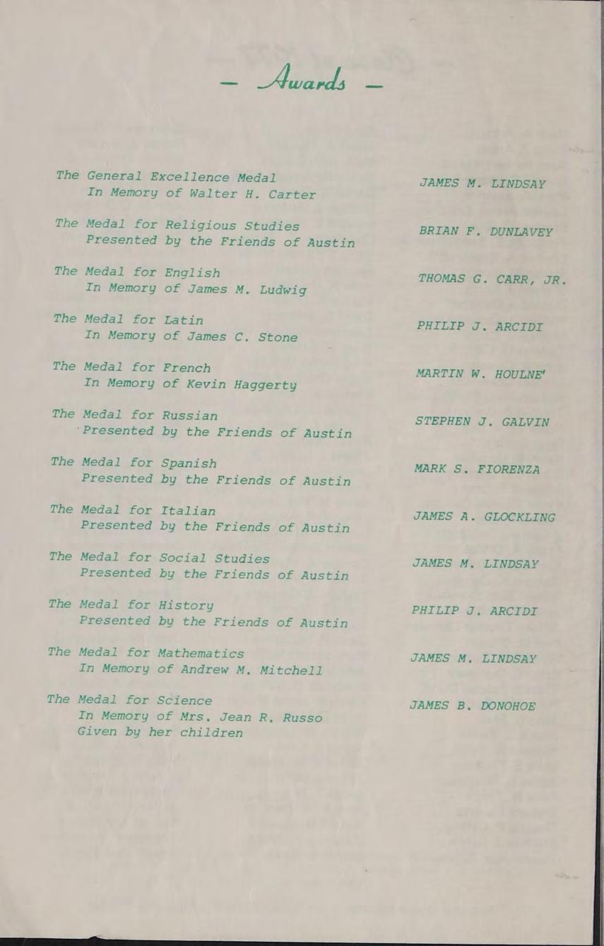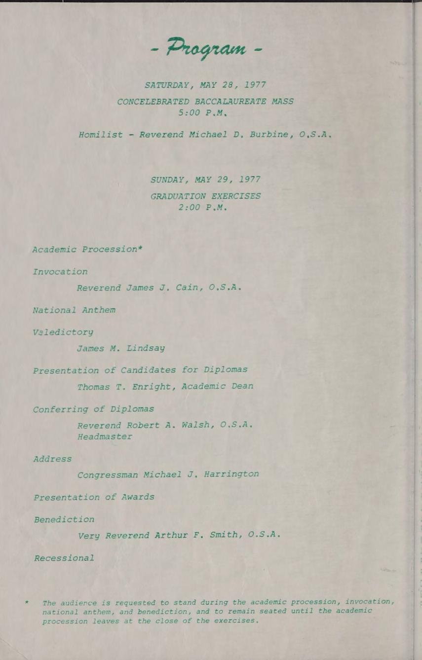 Very Rev. Author Smith, O.S.A. Prior of the Augustinian Community-Trustee. A.B. Villanova University, GRADUATE STUDIES: M.A. Villonova University, SUBJECTS: Religion Il, U.S. History, Modern History, ACTIVITIES: National Honor Society, Honors oer Club, Moderator of Friends of Austin.