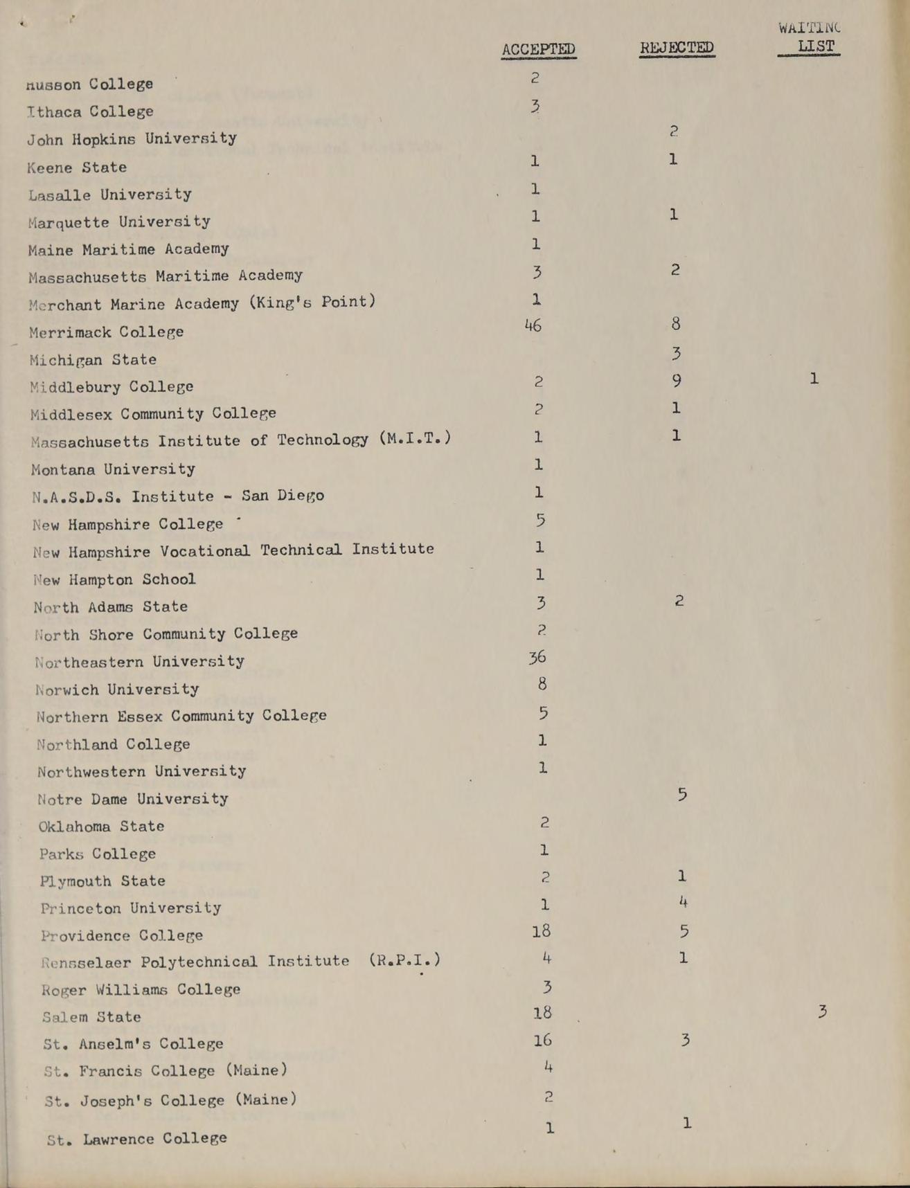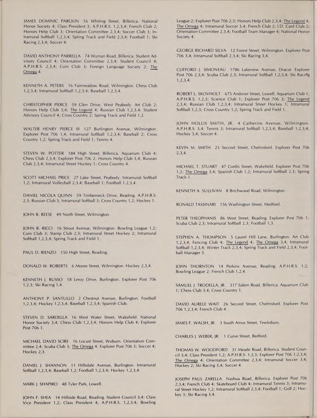 B.A. Merrimack College, GRADUATE STUDIES: Boston State College, STUDIES: Modein Biology, Comparative Anatomy, Oceanography, ACTIVITIES: Driver Education, Explorer Post 707, Aquarium Club.