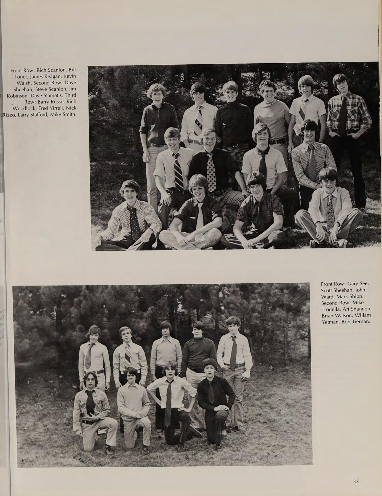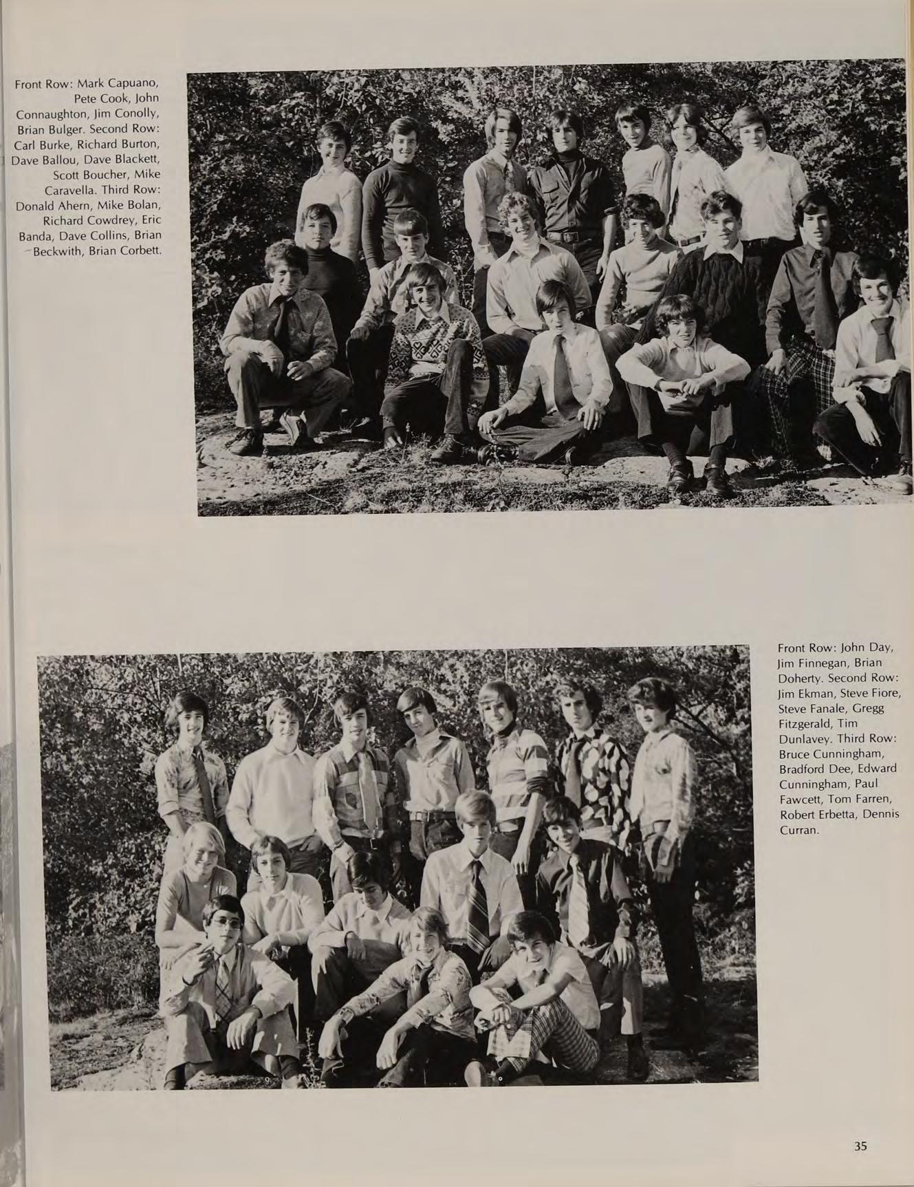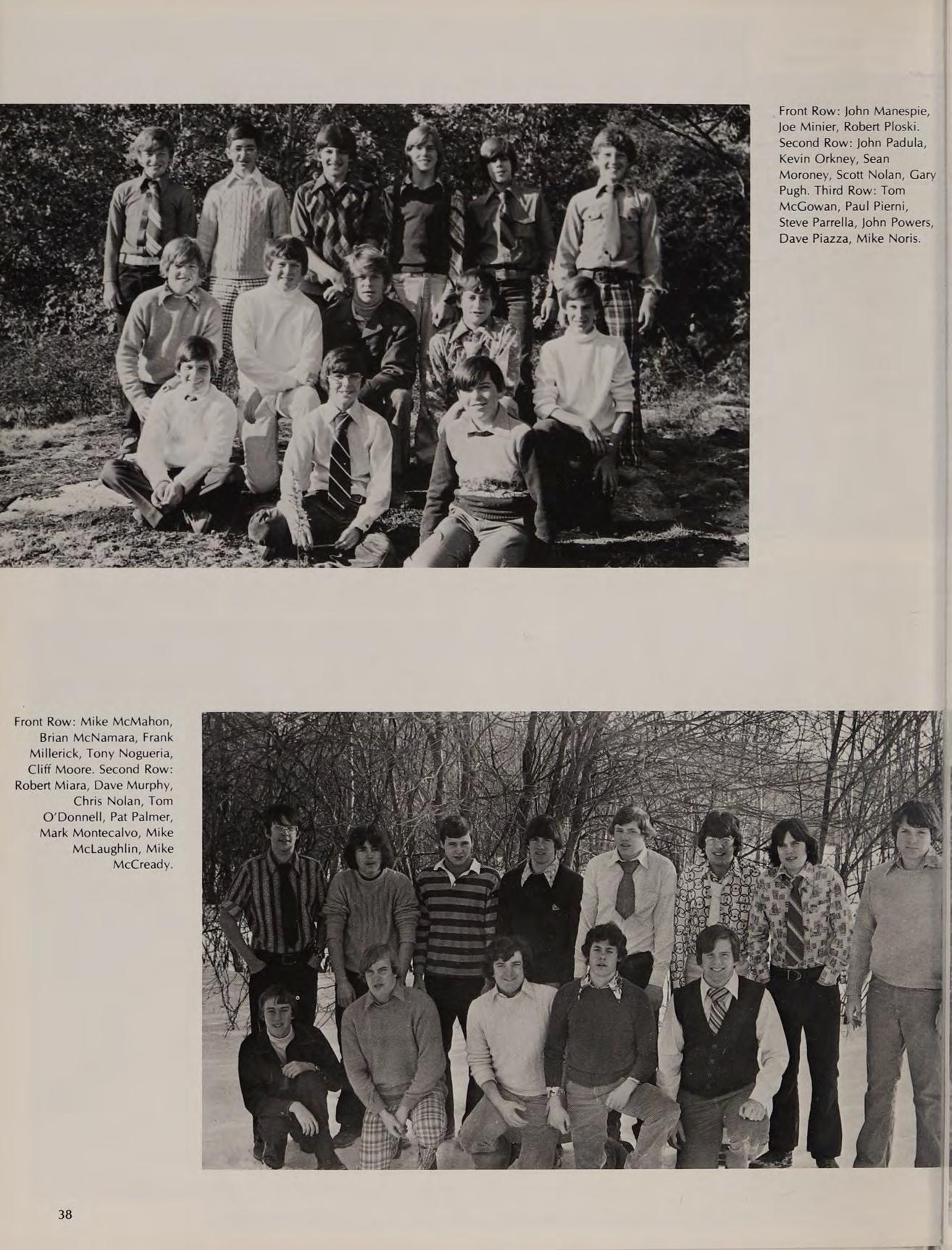 First Row: Cheeksy Finocchiaro, Mark Drossos, Steve Foley, Cosie DiBiase, Pat Goes. Second Row: Jack Galvin, Bill Gallagher, Barry Fitzgerald, John Drugan, Mark D’Apice. Third Row: Craig Dougherty, Joe DeLisle, Dan Desharnis, Tim Doherty, Charlie Gray, Dan Gidely.