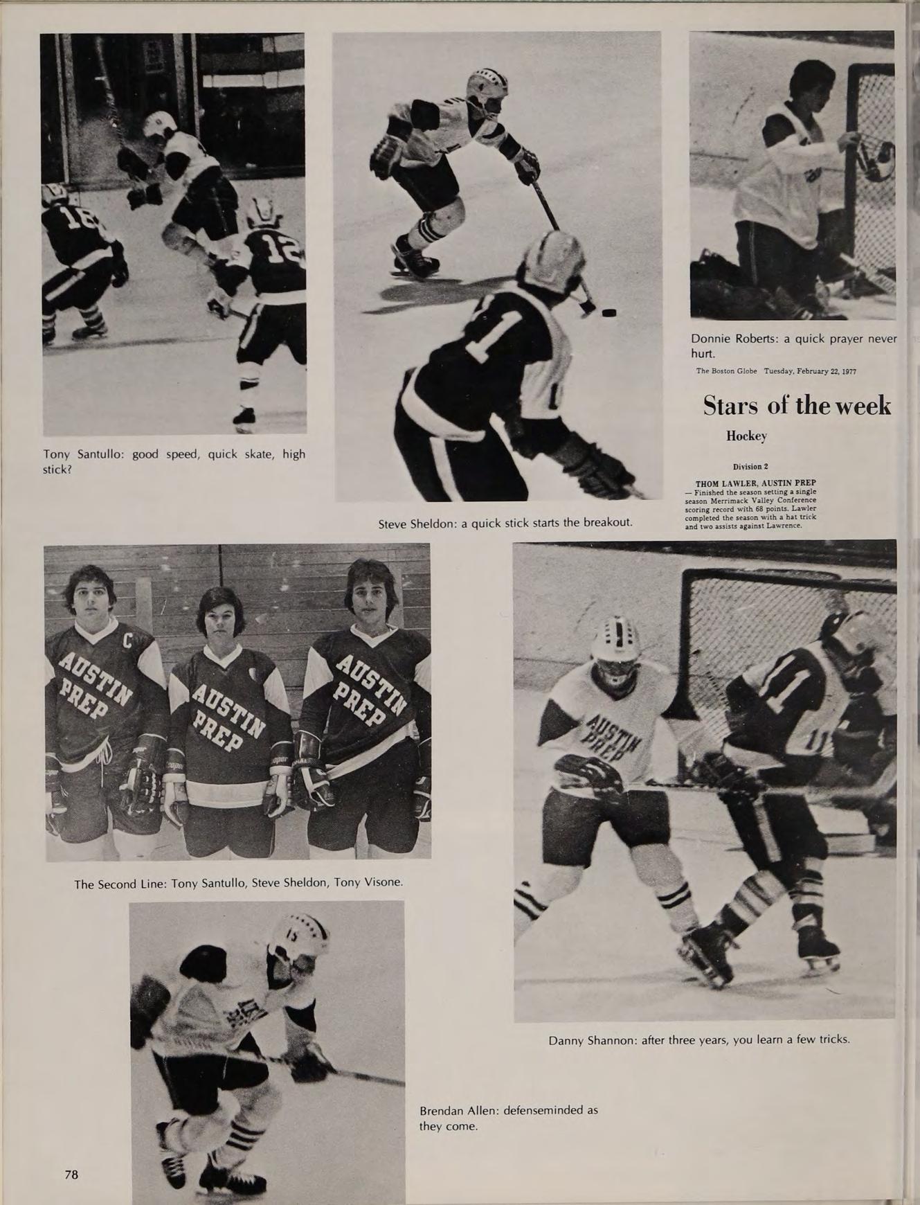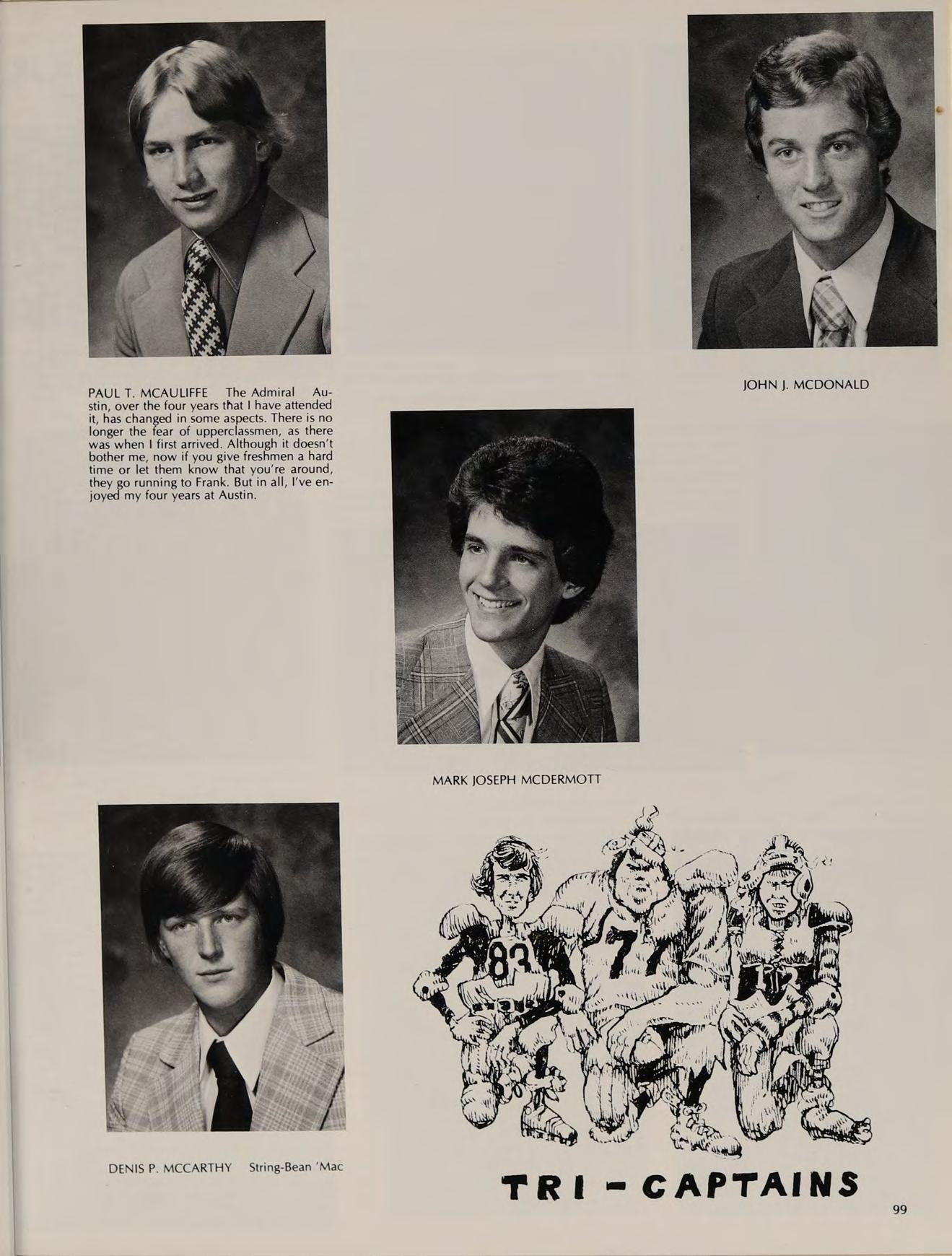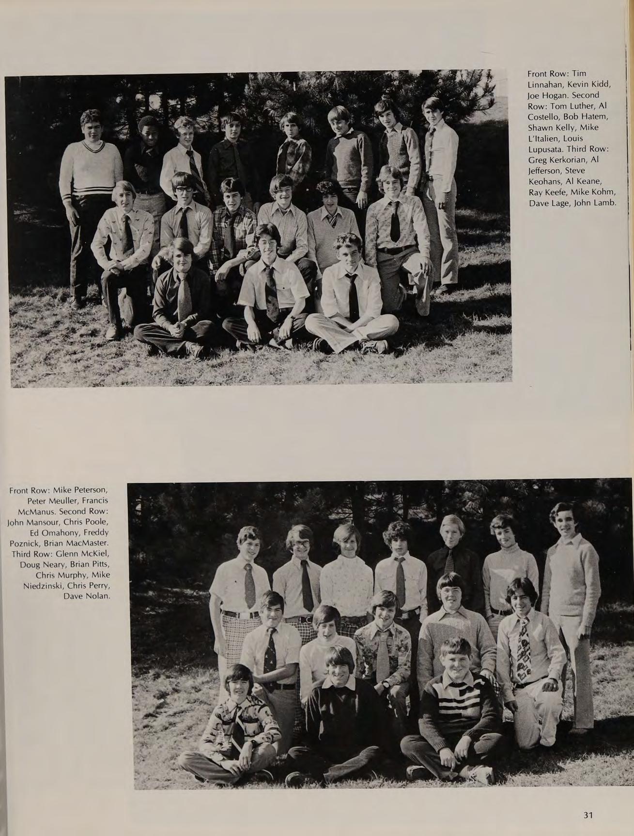 First Row: Cheeksy Finocchiaro, Mark Drossos, Steve Foley, Cosie DiBiase, Pat Goes. Second Row: Jack Galvin, Bill Gallagher, Barry Fitzgerald, John Drugan, Mark D’Apice. Third Row: Craig Dougherty, Joe DeLisle, Dan Desharnis, Tim Doherty, Charlie Gray, Dan Gidely.