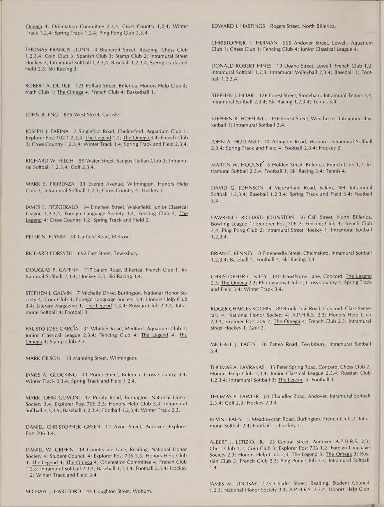 SUBJECTS: Language Arts |, Il, Types of Literature, Driver Education, ACTIVITIES: Junior Class Moderator, Fencing Club.