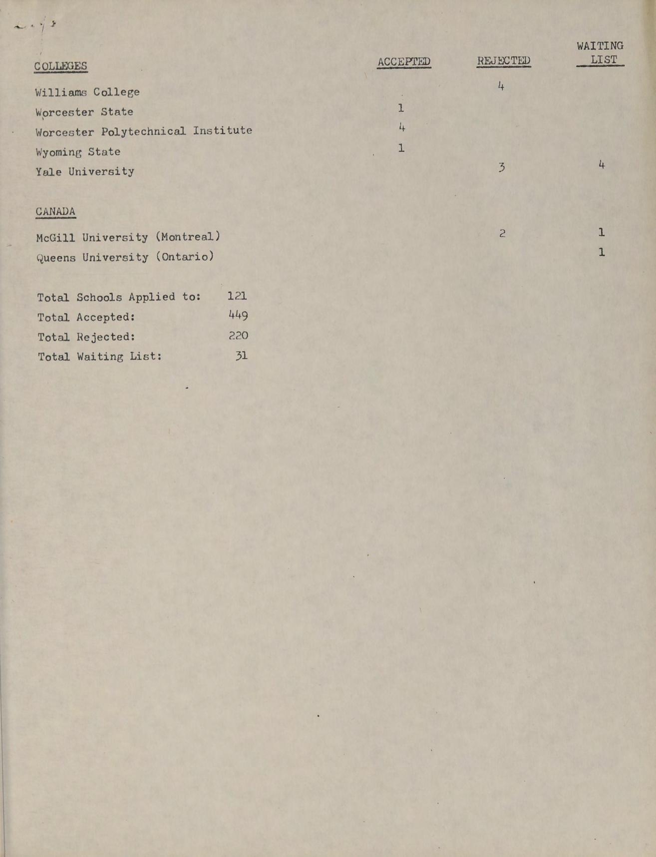 B.S. Tufts University, GRADUATE STUDIES: PH.D. Massachusetts Institute of Technology, SUBJECTS: Chemistry Study, Advanced Chemistry, Directed Readings in Chemistry, ACTIVITIES: Science Club, Ping Pong Club.