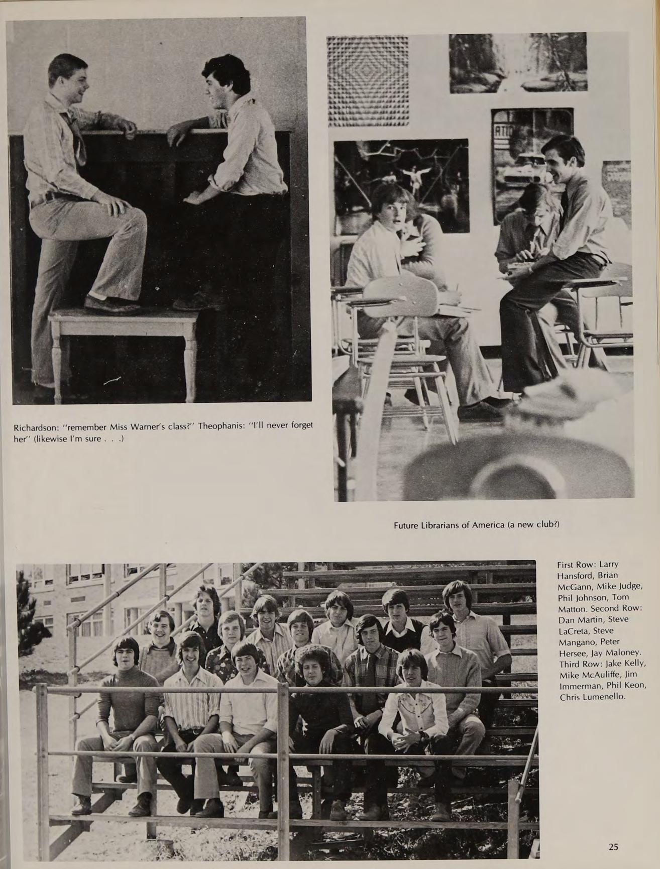 Richardson: “remember Miss Warner's class?” Theophanis: ‘‘I’ll never forget her’ (likewise I’m sure. .)