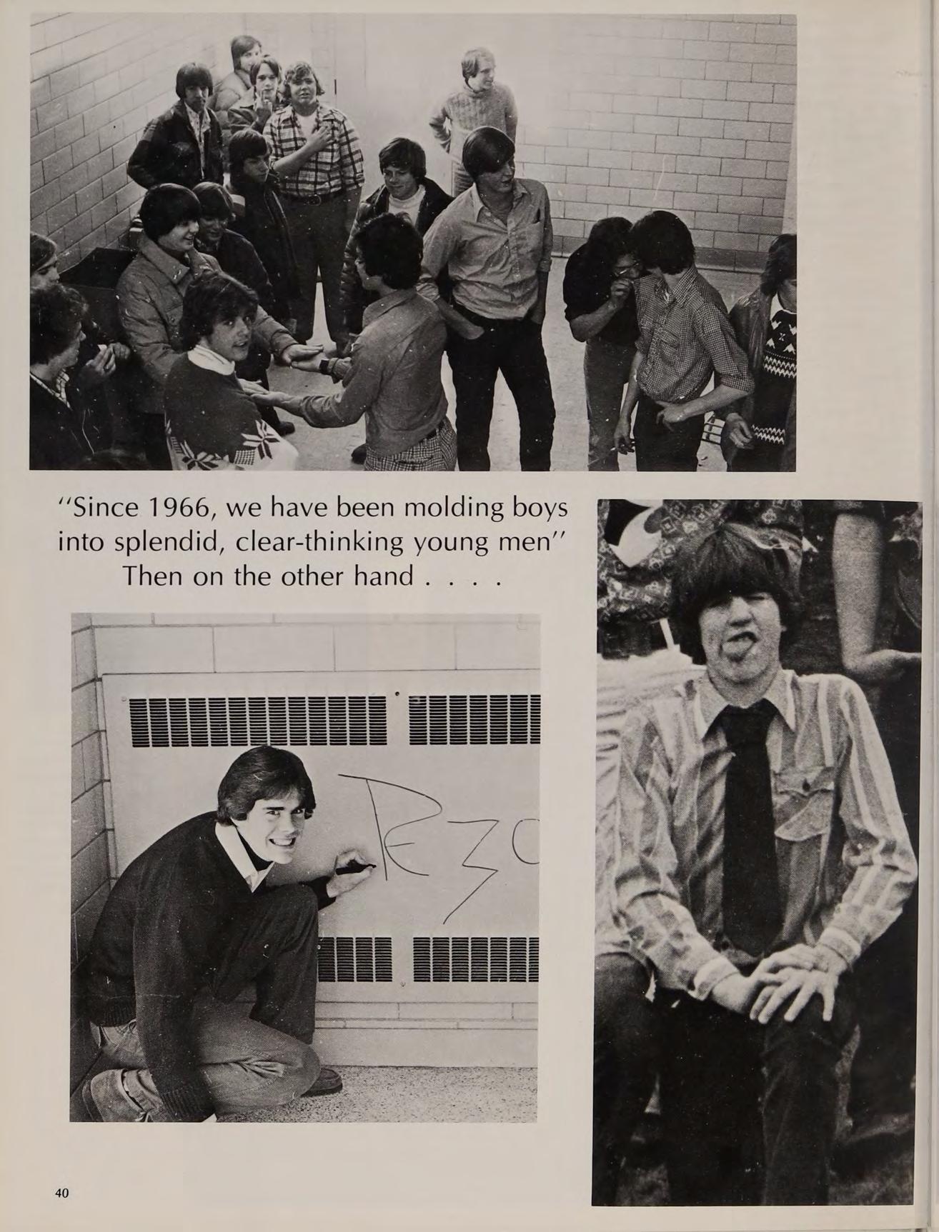 “Since 1966, we have been molding boys into splendid, clear-thinking young men”’ Then on the other hand... .